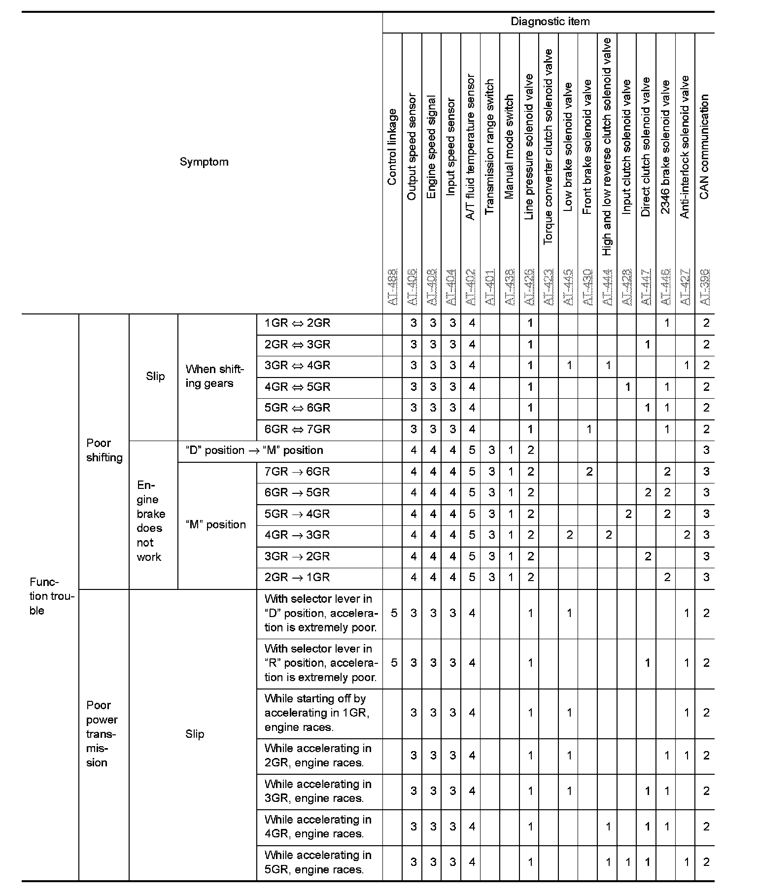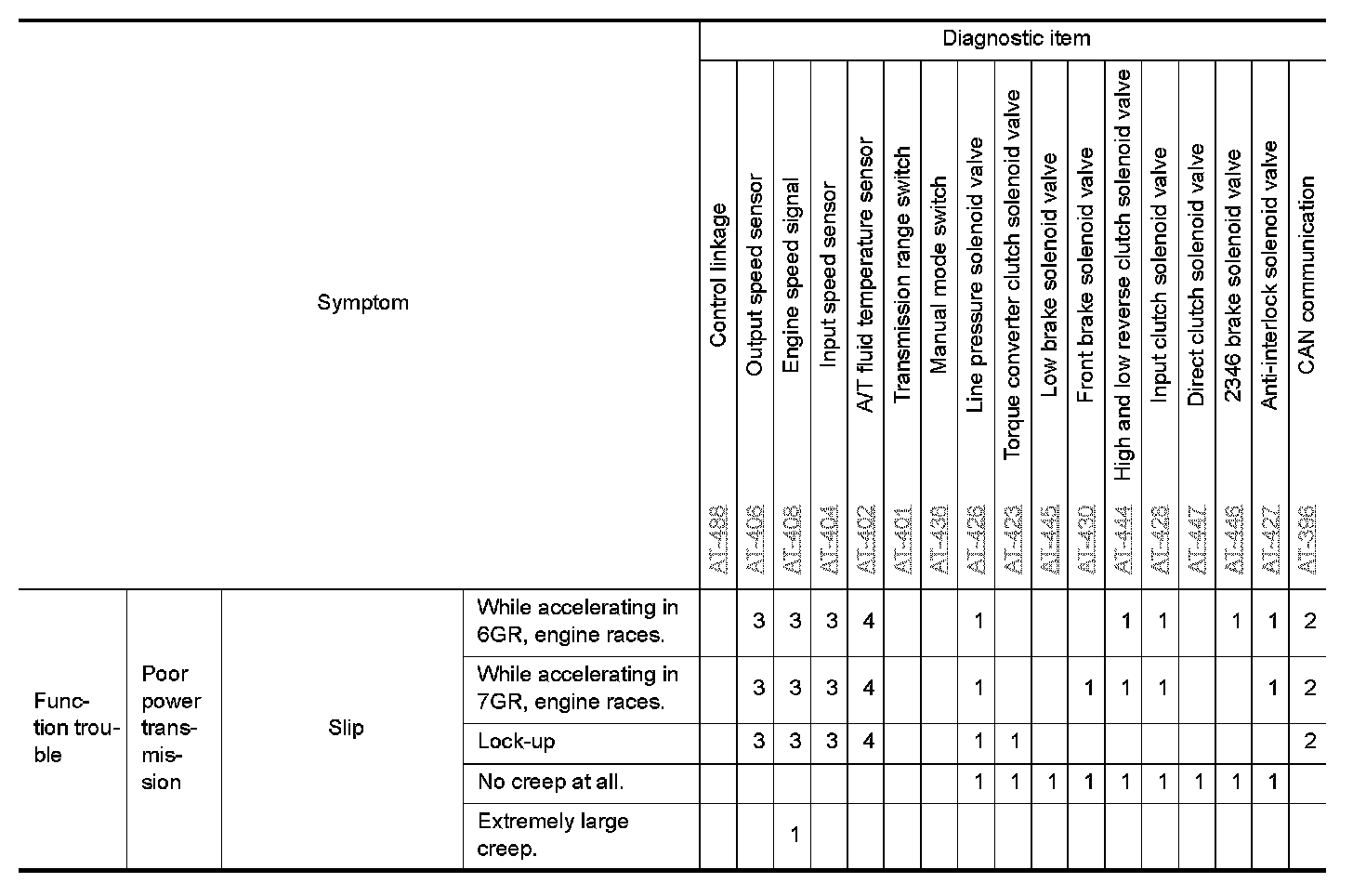 If any malfunction occurs in the RE7R01A transmission, replace the A/T assembly.