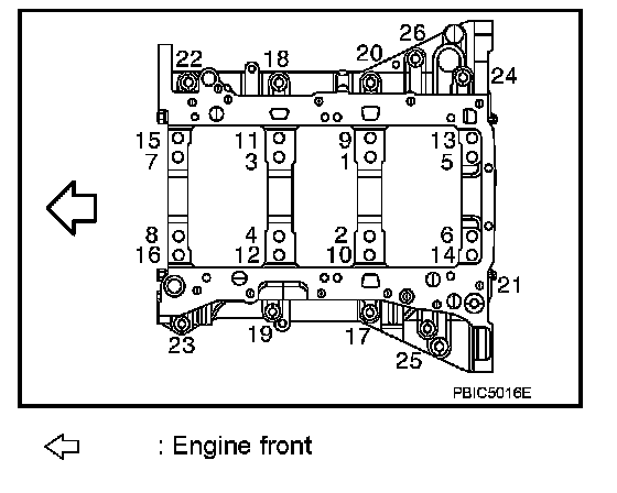 Tighten lower cylinder block bolt (No. 17 to 26) in numerical order as shown in the figure.