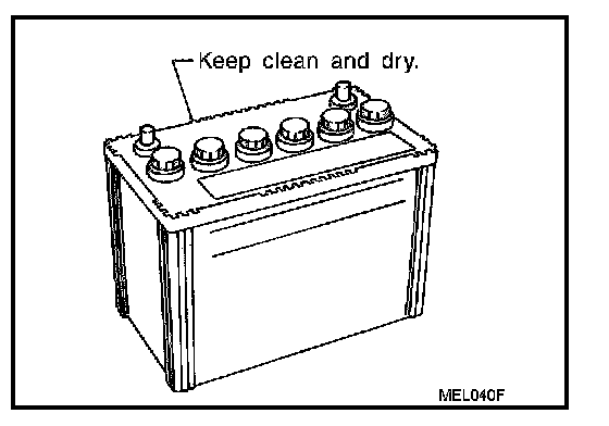 - The battery surface (particularly its top) should always be kept clean and dry.