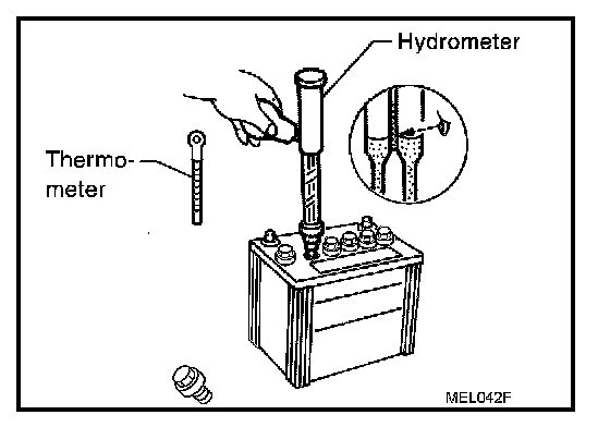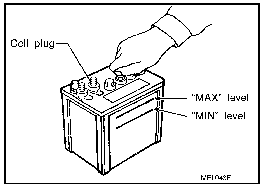 - Never add distilled water through the hole used to check specific gravity.