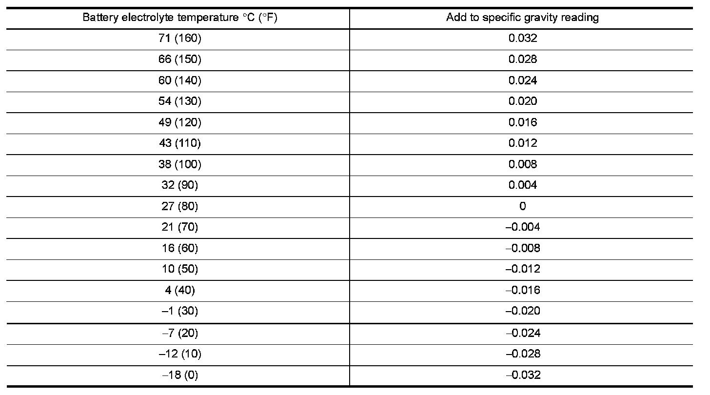 2. Use the chart below to correct your hydrometer reading according to electrolyte temperature.