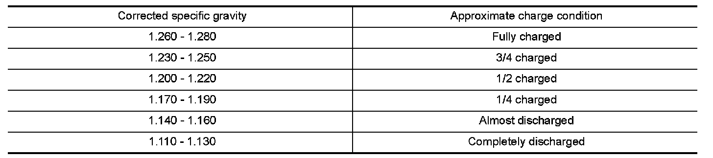 - If, after charging, the specific gravity of any two cells varies more than 0.050, the battery should be replaced.