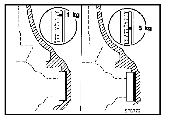 If the turning torque is less than the specified range: Use a thicker thrust washer.