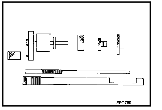 13. Remove the J-34309 differential shim selector tool from the final drive housing. Then disassemble to retrieve the pinion bearings.