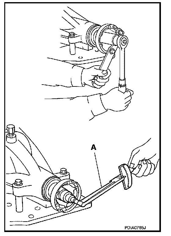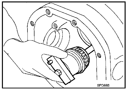 11. Adjust to the drive pinion lock nut tightening torque and pinion bearing preload torque.