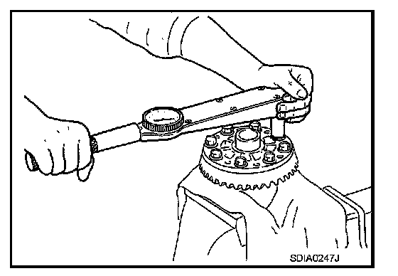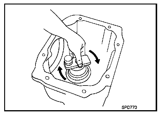 - After adjustment, rotate drive pinion back and forth 2 to 3 times to check for unusual noise, rotation malfunction, and other malfunctions.