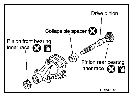 - If the preload torque exceeds the specified value, replace collapsible spacer and tighten it again to adjust. Never loosen drive pinion lock nut to adjust the preload torque.