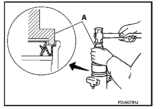 - Apply multi-purpose grease onto oil seal lips, and gear oil onto the circumference of oil seal.