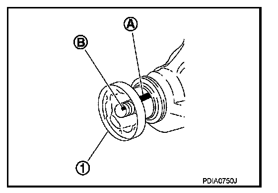 When reusing drive pinion, align the matching mark (B) of drive pinion with the matching mark (A) of companion flange, and then install companion flange (1).
