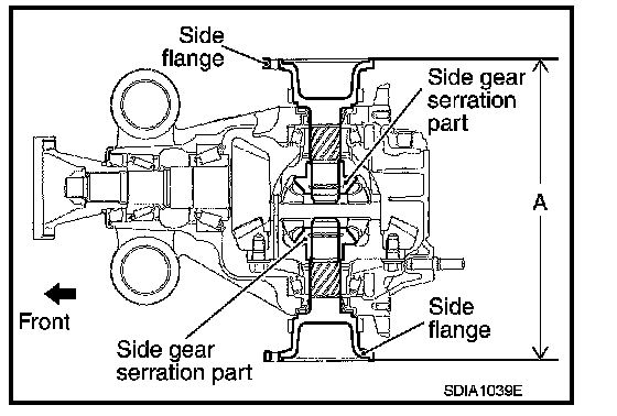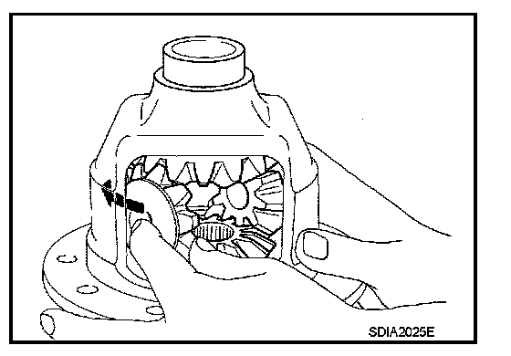 5. Measure side gear end play. If necessary, select the appropriate side gear thrust washers. Refer to "Differential Side Gear Clearance".