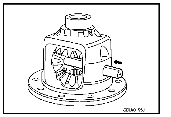 4. Align the lock pin holes on differential case with shaft, and install pinion mate shaft.