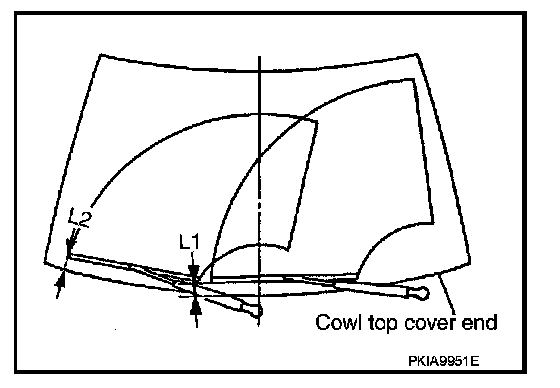 6. Make sure that wiper blades stop within clearance "L1" and "L2".