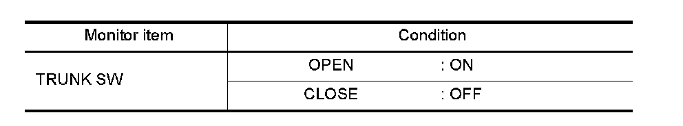 Check ("TRUNK SW") in "DATA MONITOR" mode with CONSULT-III.
