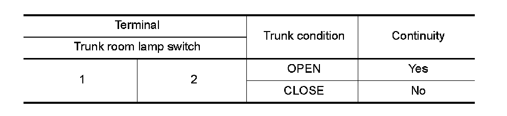 OK - Trunk room lamp switch circuit is OK.