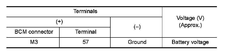 2. Check voltage between BCM connector and ground.