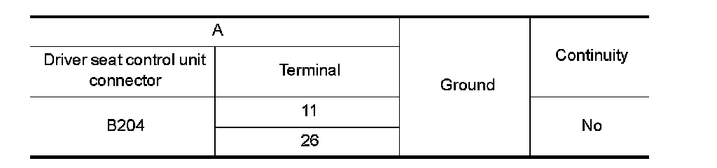 3. Check continuity between driver seat control unit connector and ground.