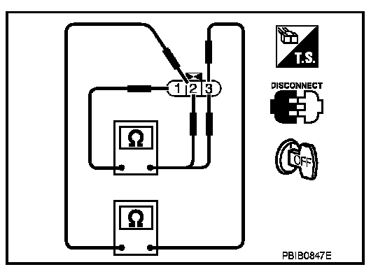 3. Check resistance between ignition coil terminals as per the following.
