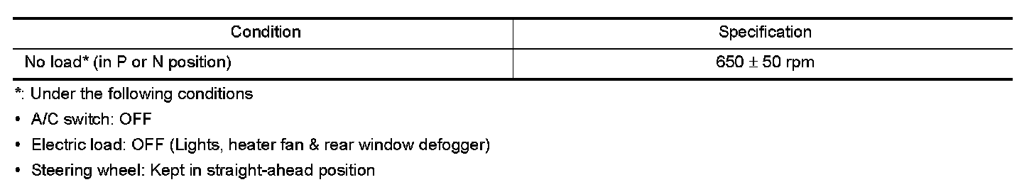 Idle Speed: Specifications