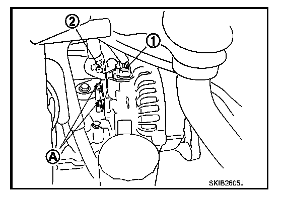 4. Disconnect alternator connector (2).