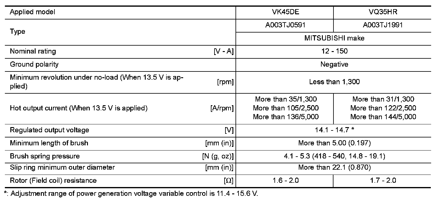 Alternator: Specifications