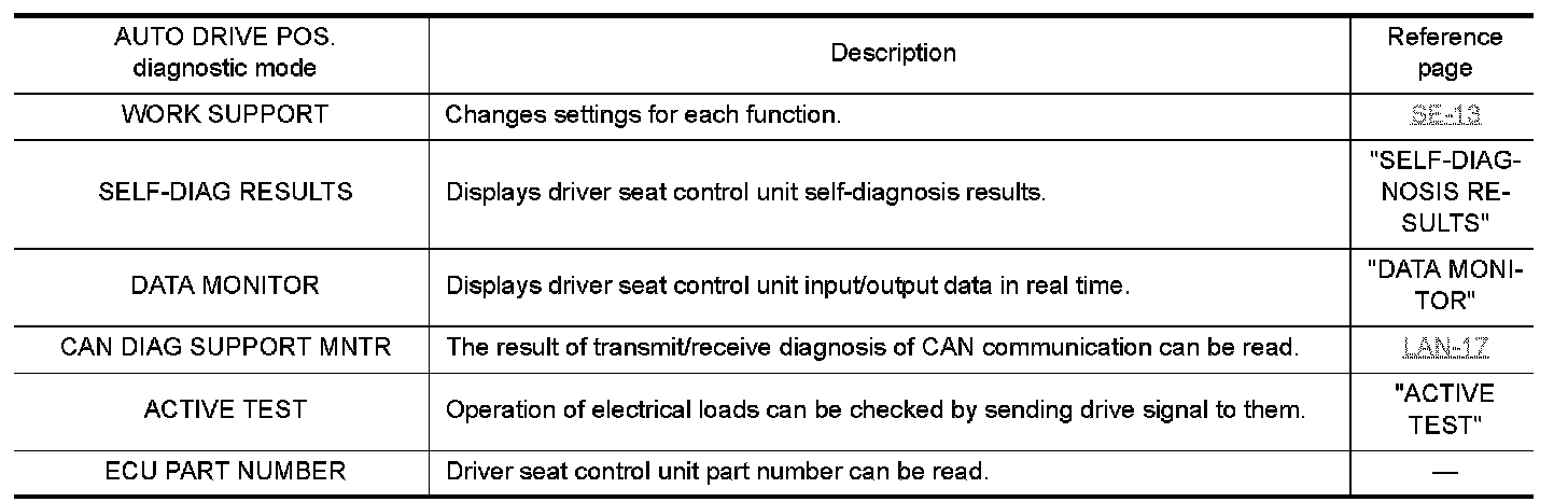 CONSULT-III can display each diagnostic item using the diagnostic test modes shown following.