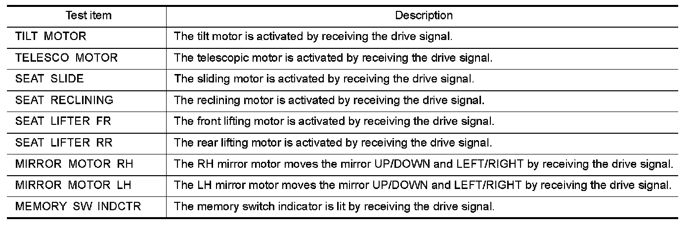 If active test is performed, reset seat memory and key fob interlock drive positioner after performing work.