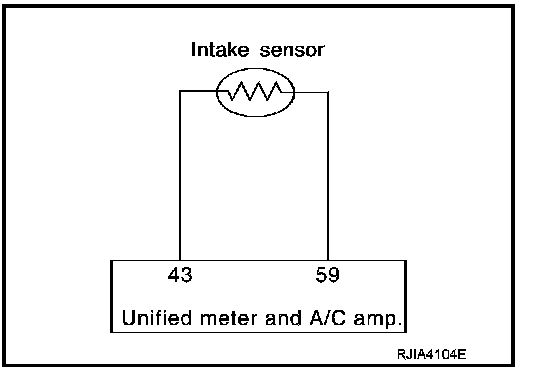 SYMPTOM: Intake sensor circuit is open or shorted. (24 or -24 is indicated on unified meter and A/C amp. as a result of performing self-diagnosis STEP-2.)