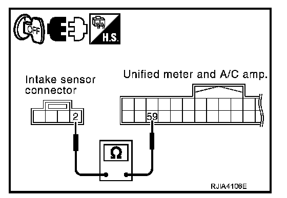2.CHECK CIRCUIT CONTINUITY BETWEEN INTAKE SENSOR AND UNIFIED METER AND A/C AMP.