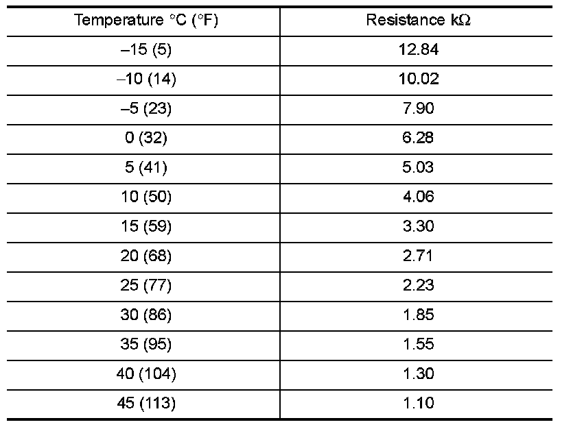 After disconnecting intake sensor connector M82, measure resistance between terminals 1 and 2 at sensor side. Refer to the table below.