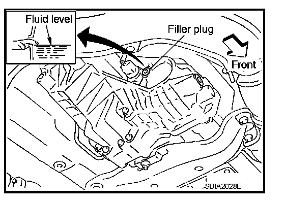 2. Check fluid level from filler plug mounting hole as shown in the figure.