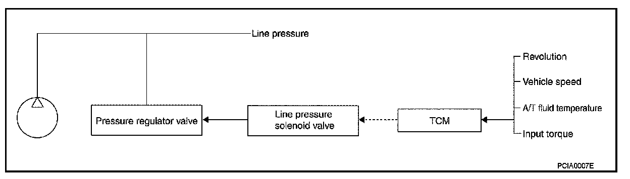 - When an input torque signal equivalent to the engine drive force is sent from the ECM to the TCM, the TCM controls the line pressure solenoid.