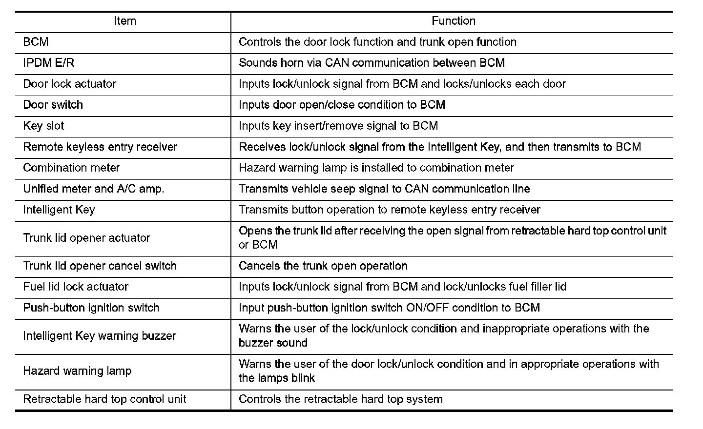REMOTE KEYLESS ENTRY FUNCTION : Component Description