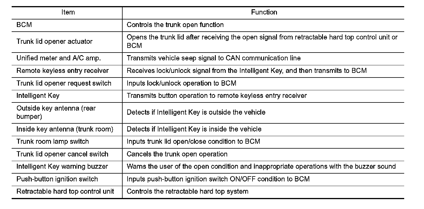 TRUNK OPEN FUNCTION : Component Description