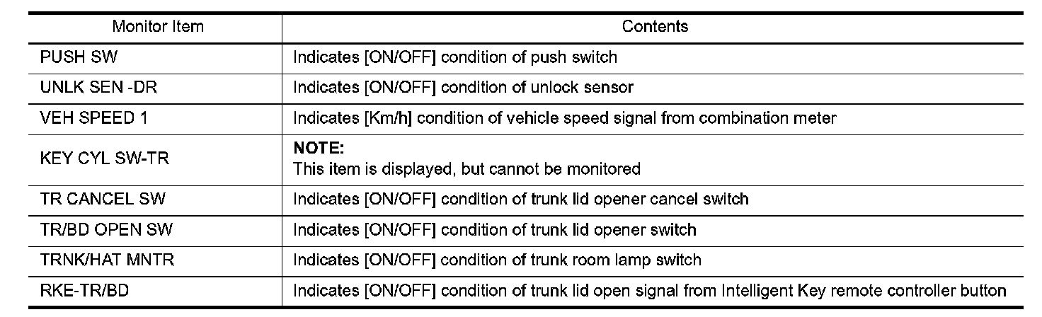 TRUNK : CONSULT-III Function (BCM - TRUNK)