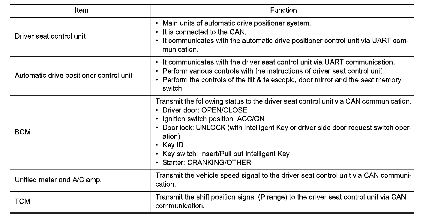 AUTOMATIC DRIVE POSITIONER SYSTEM : Component Description