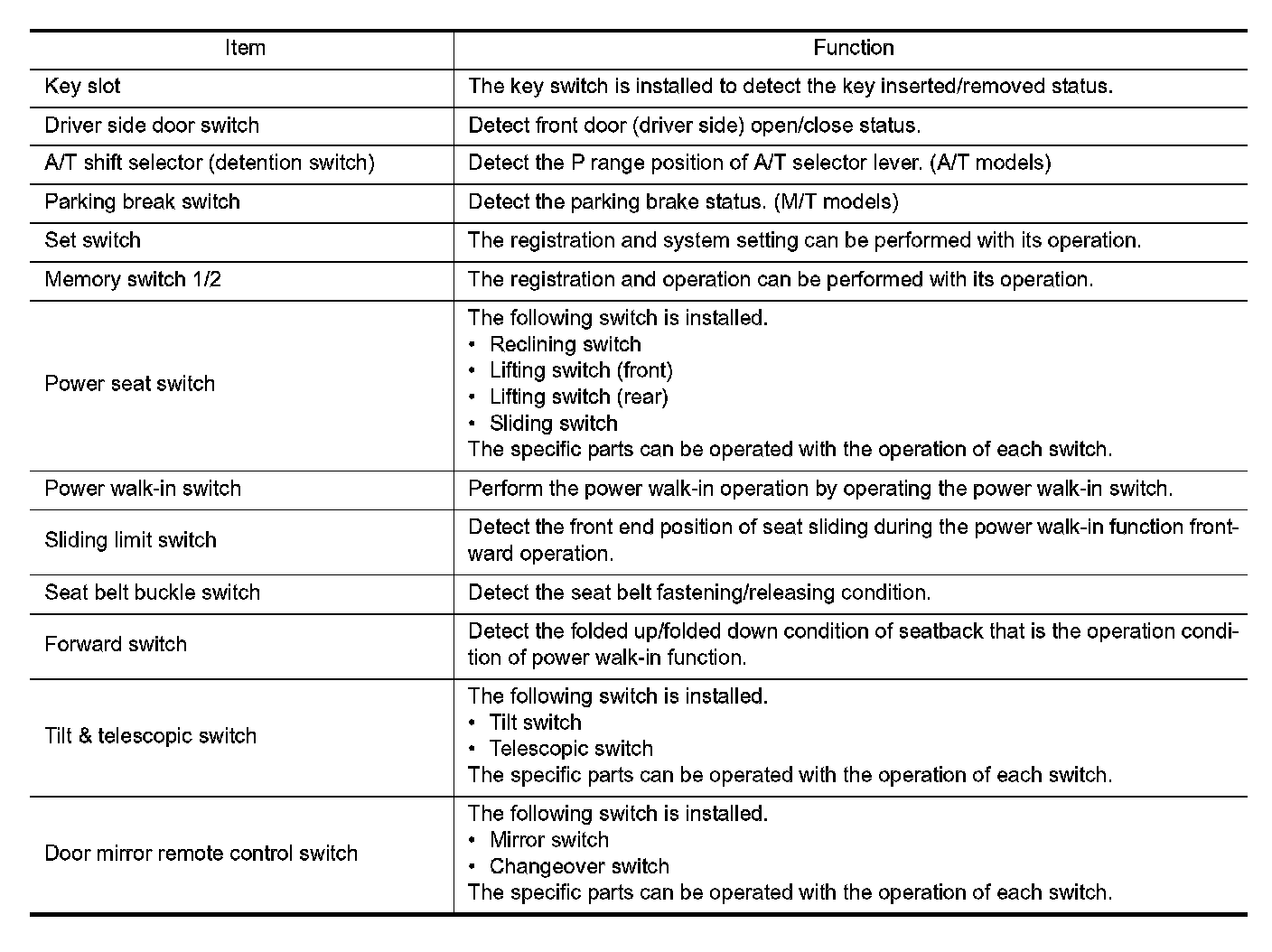 - The seat control unit adopts the sleep mode to reduce the electric power consumption.