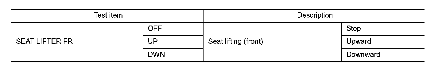 2. Select "SEAT LIFTER FR" in "Active test" mode using CONSULT-III.