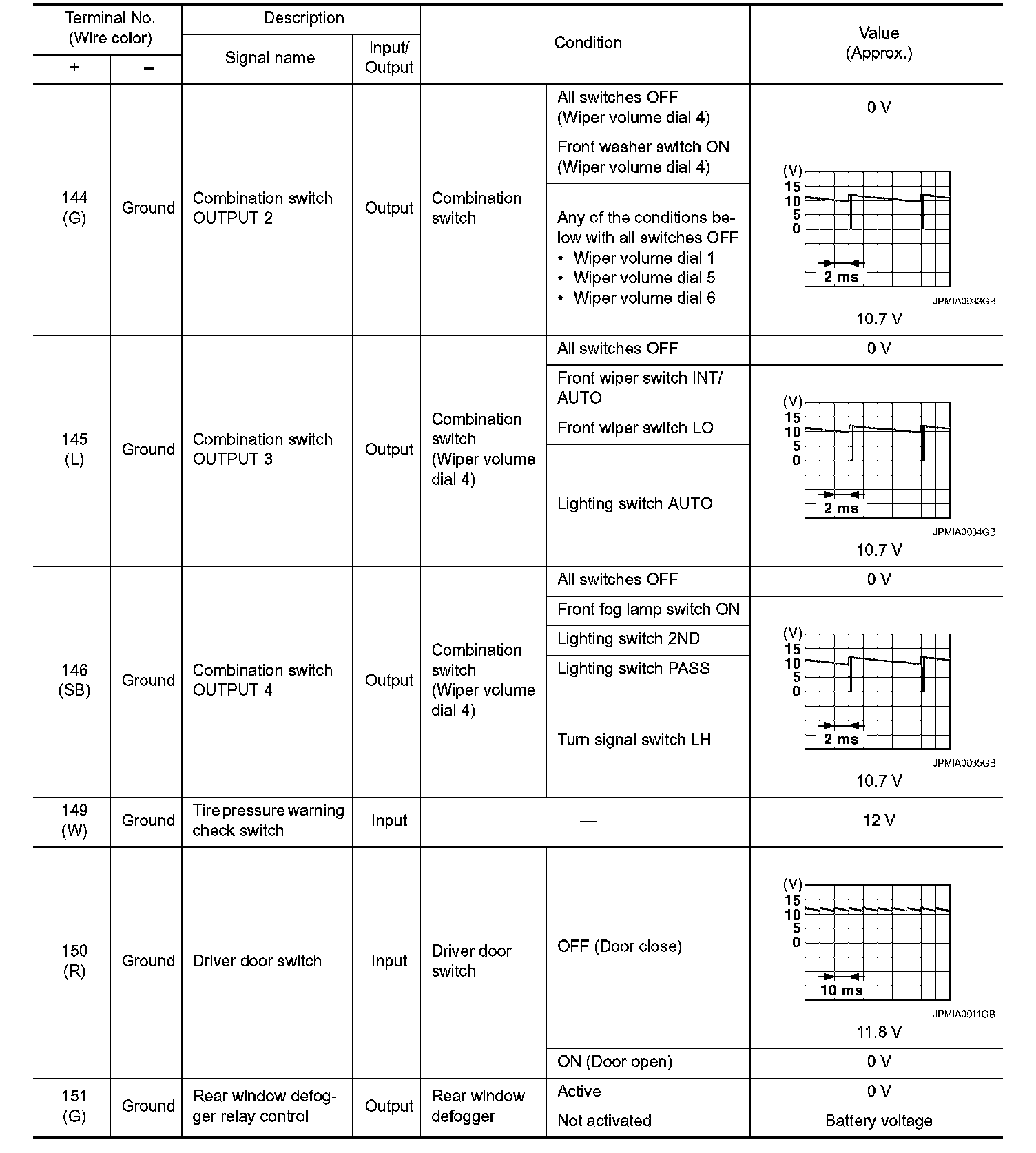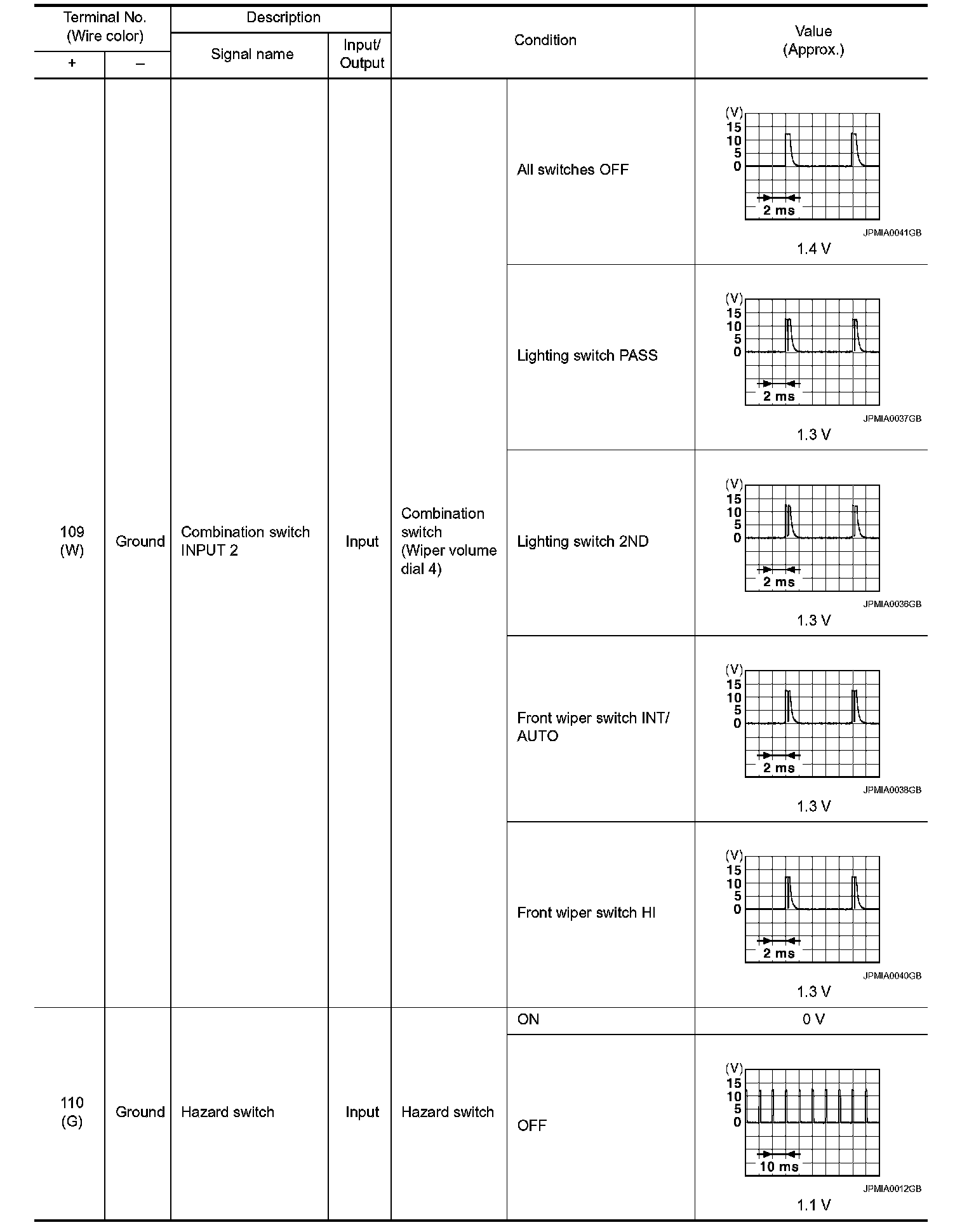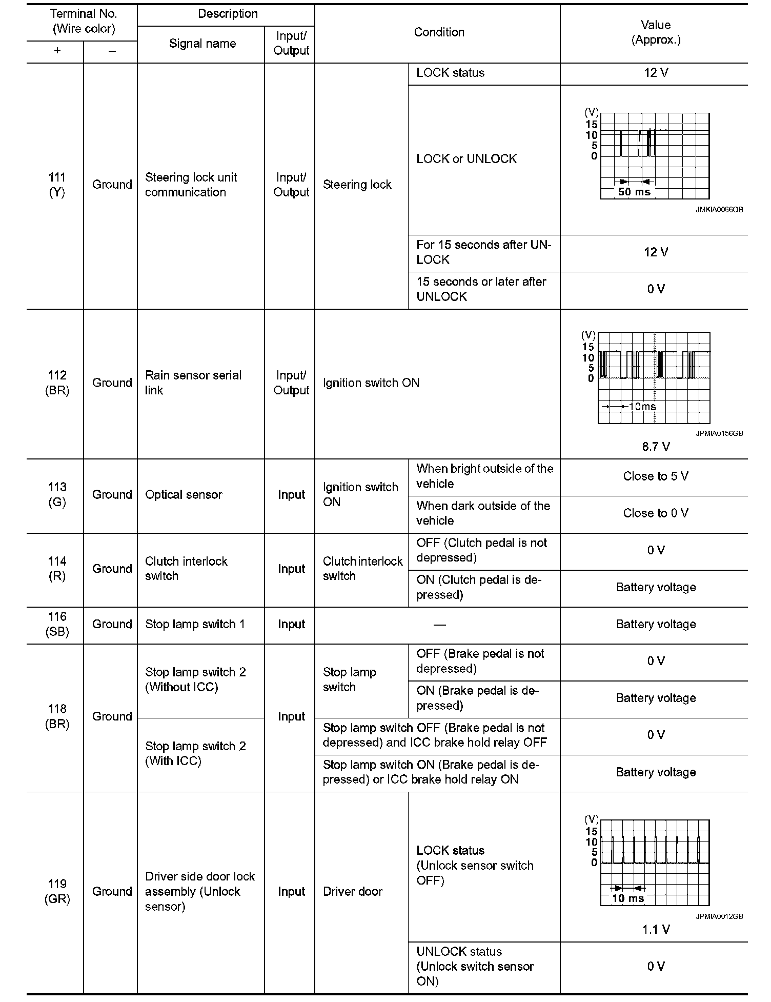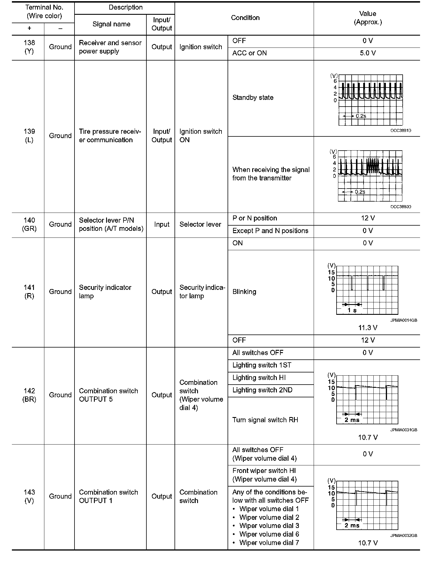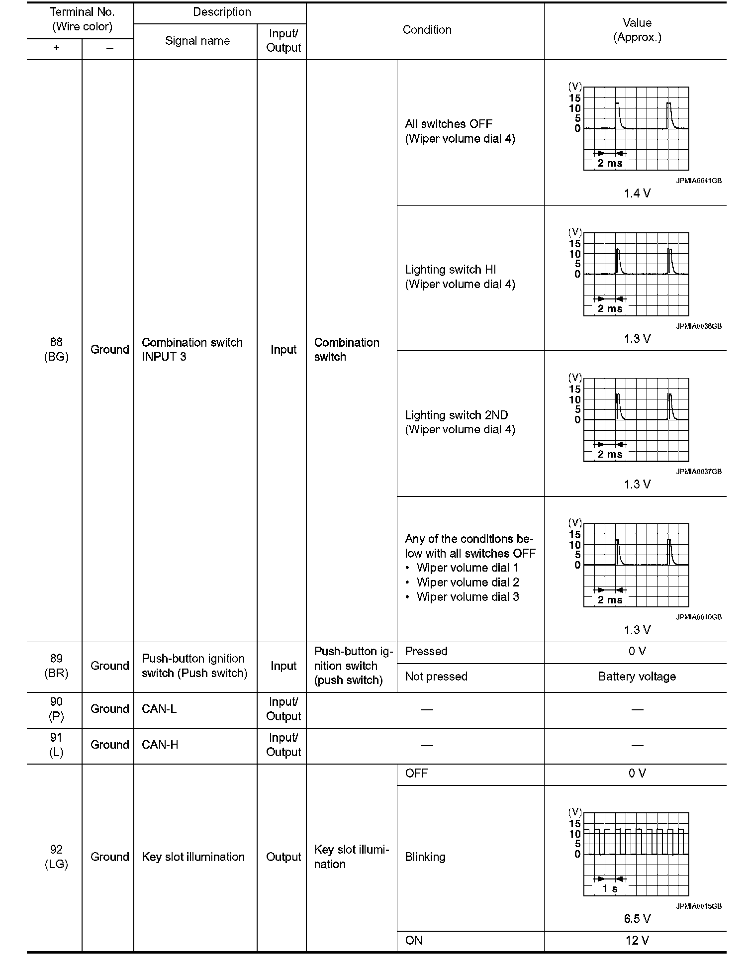 Pinout Values and Diagnostic Parameters