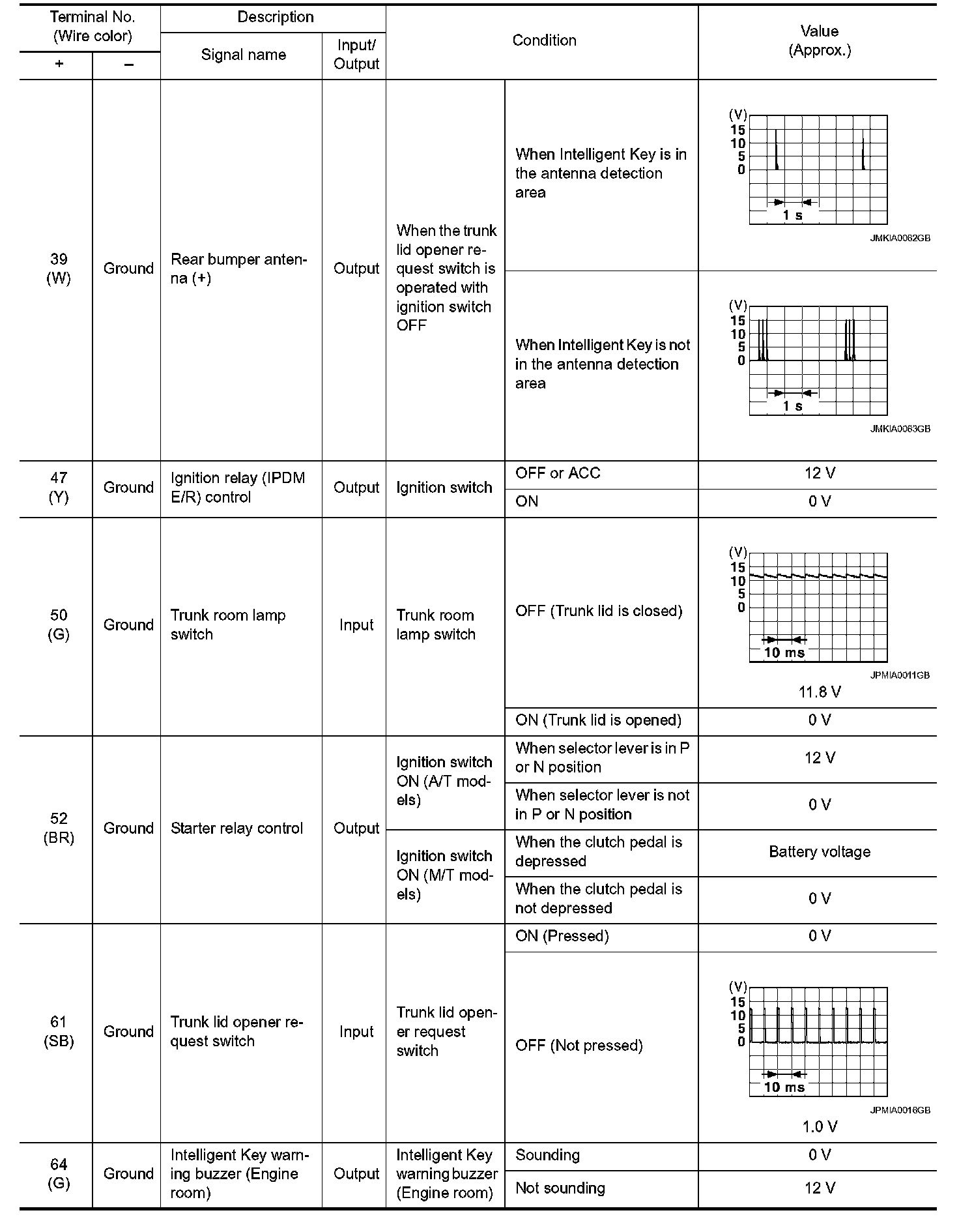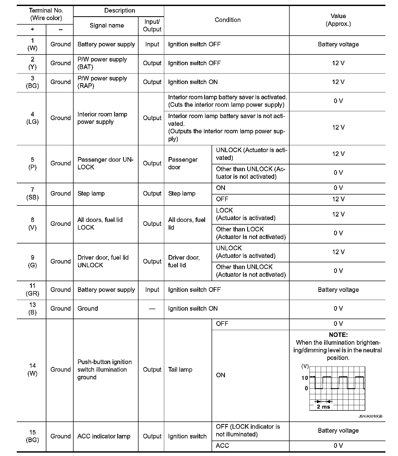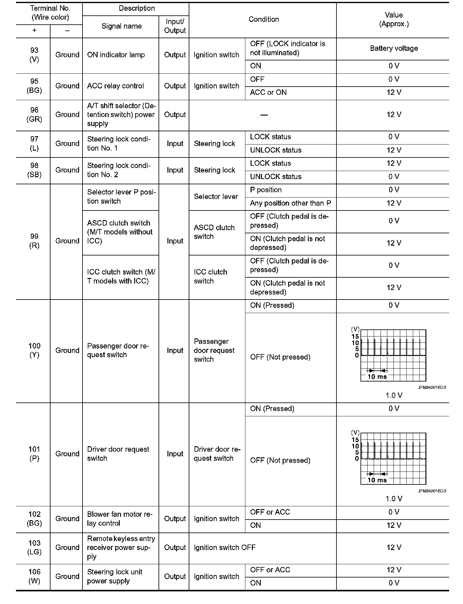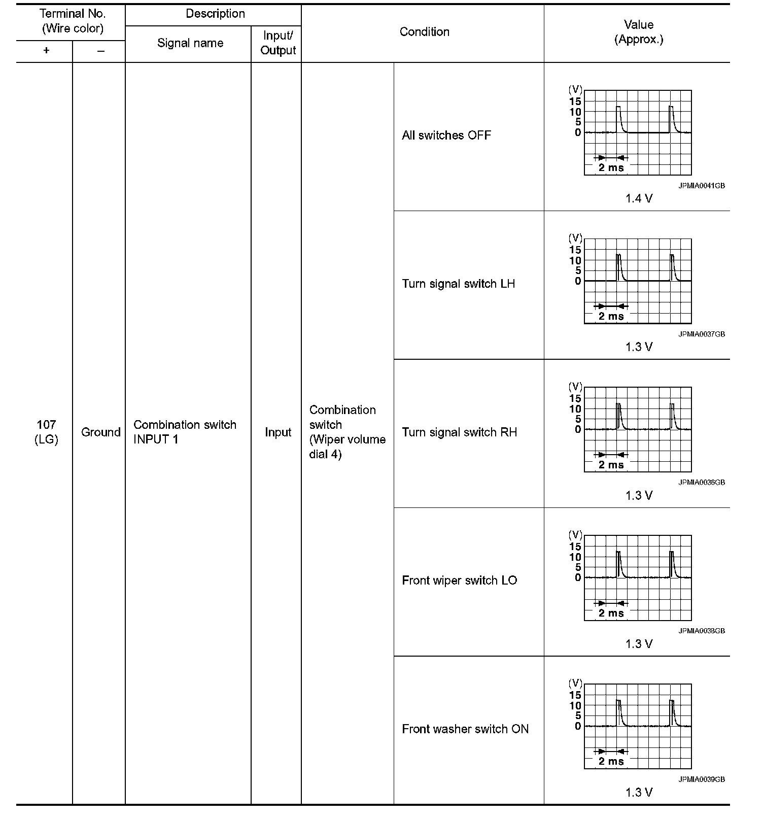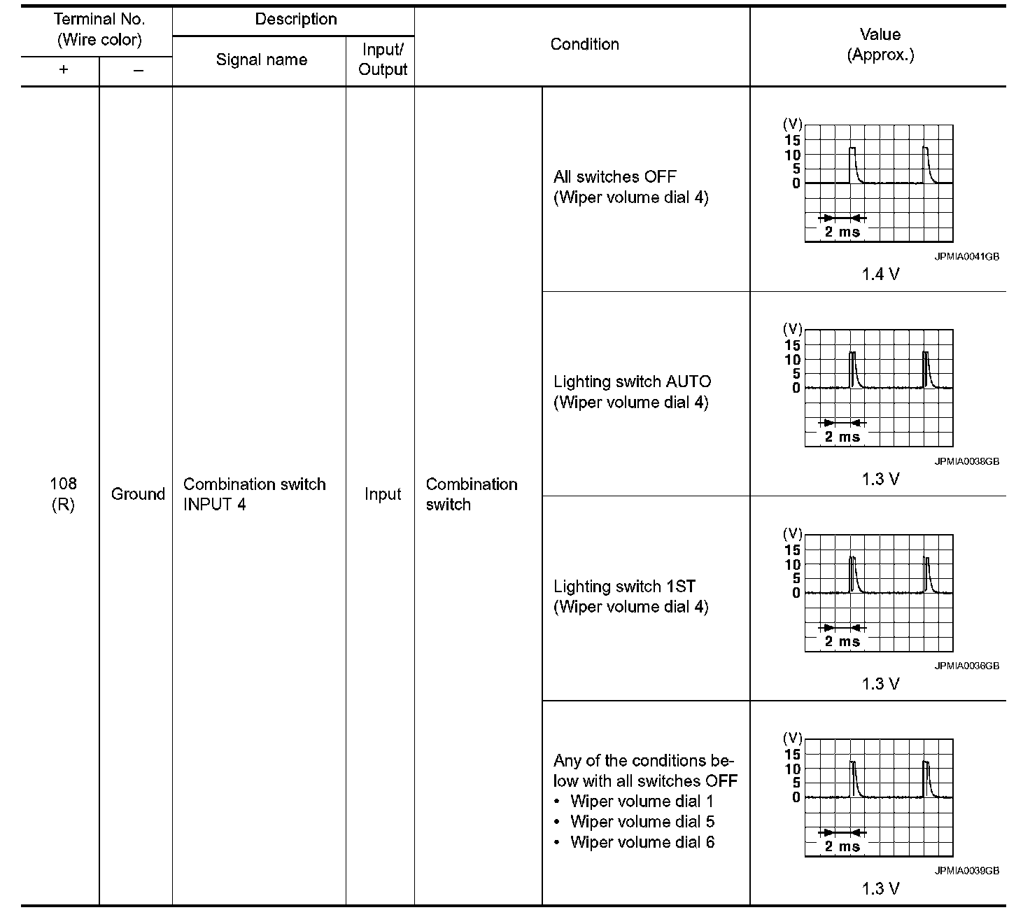 Pinout Values and Diagnostic Parameters