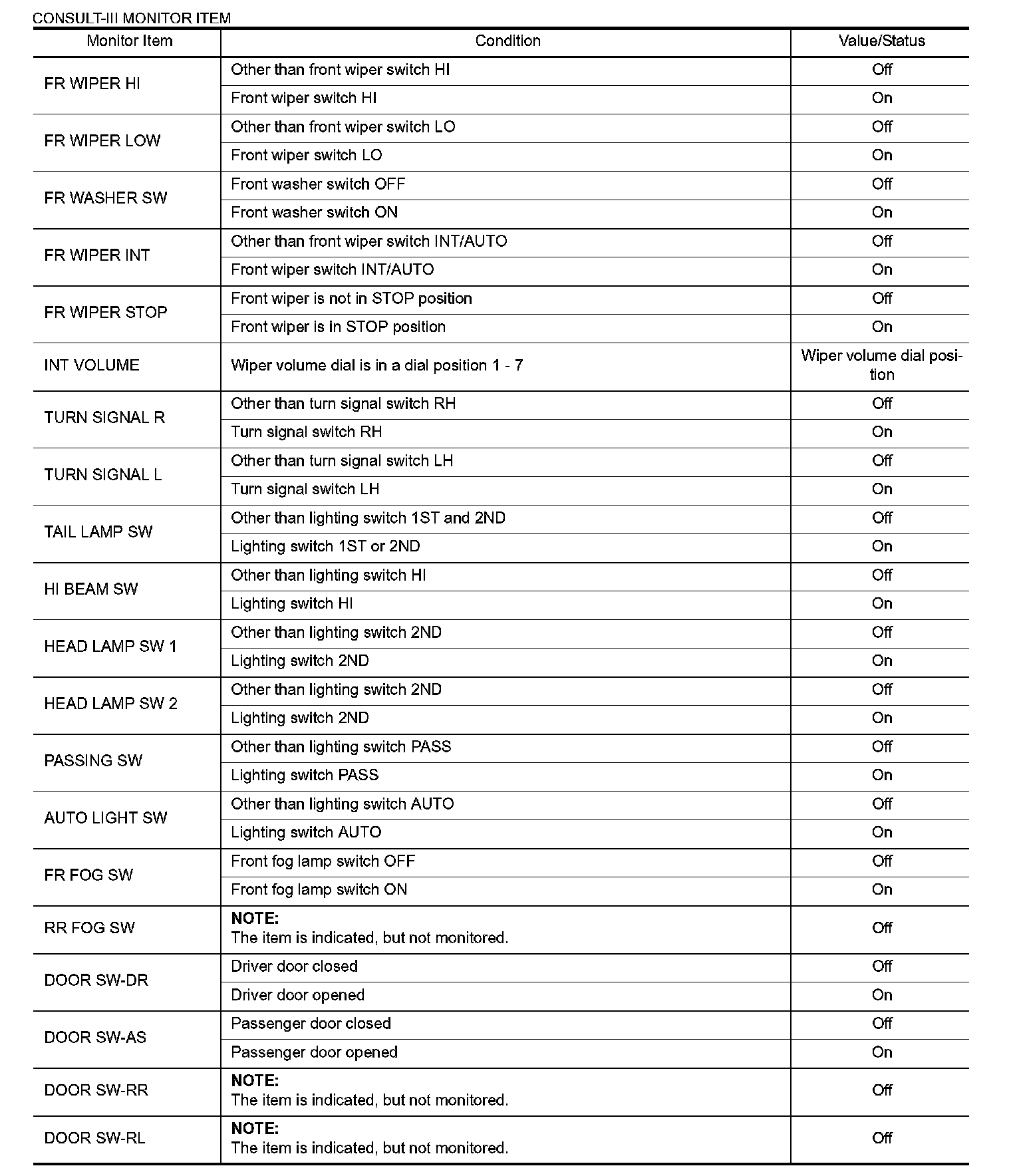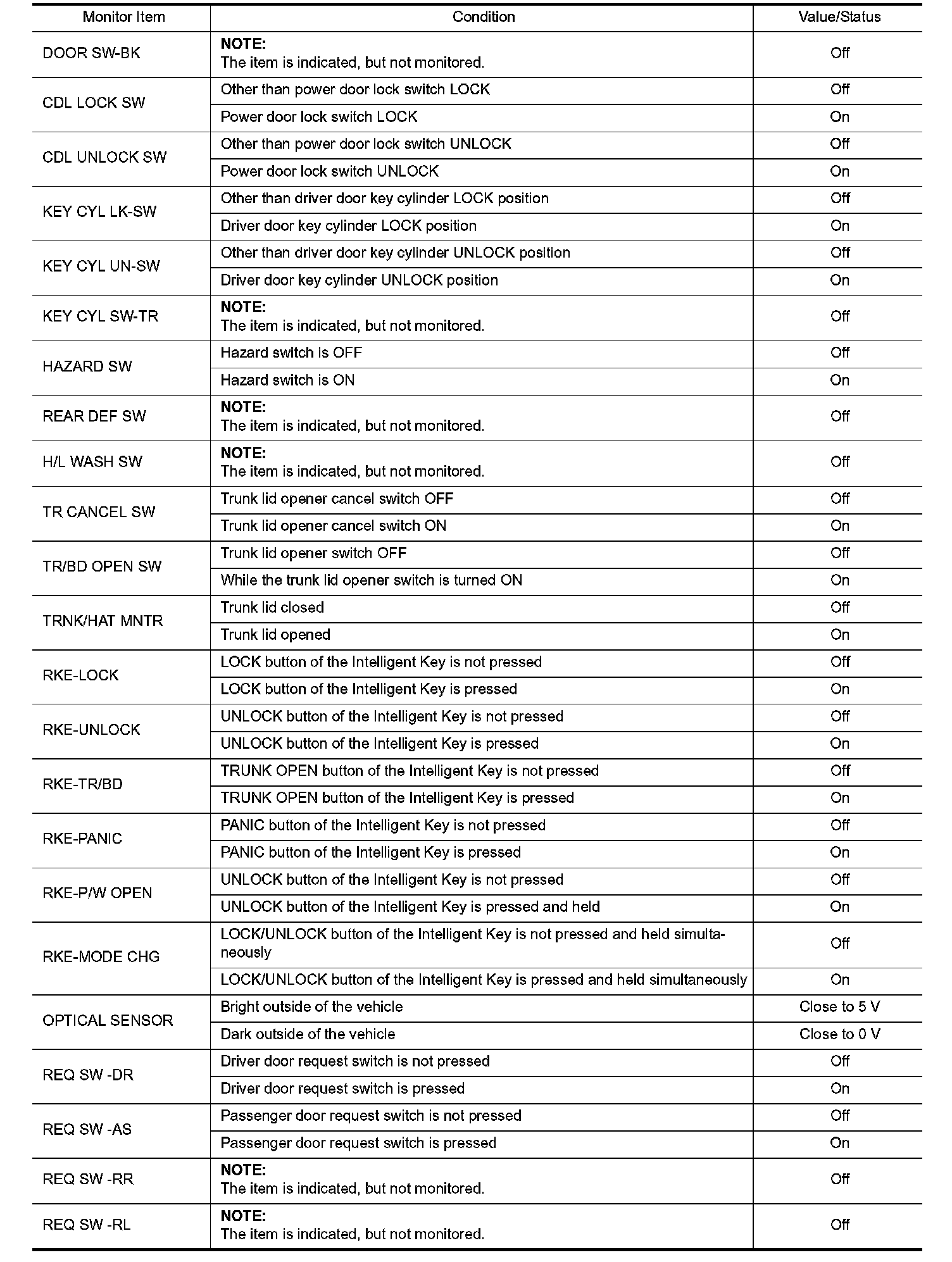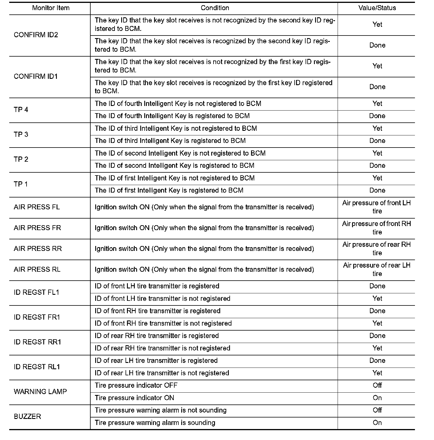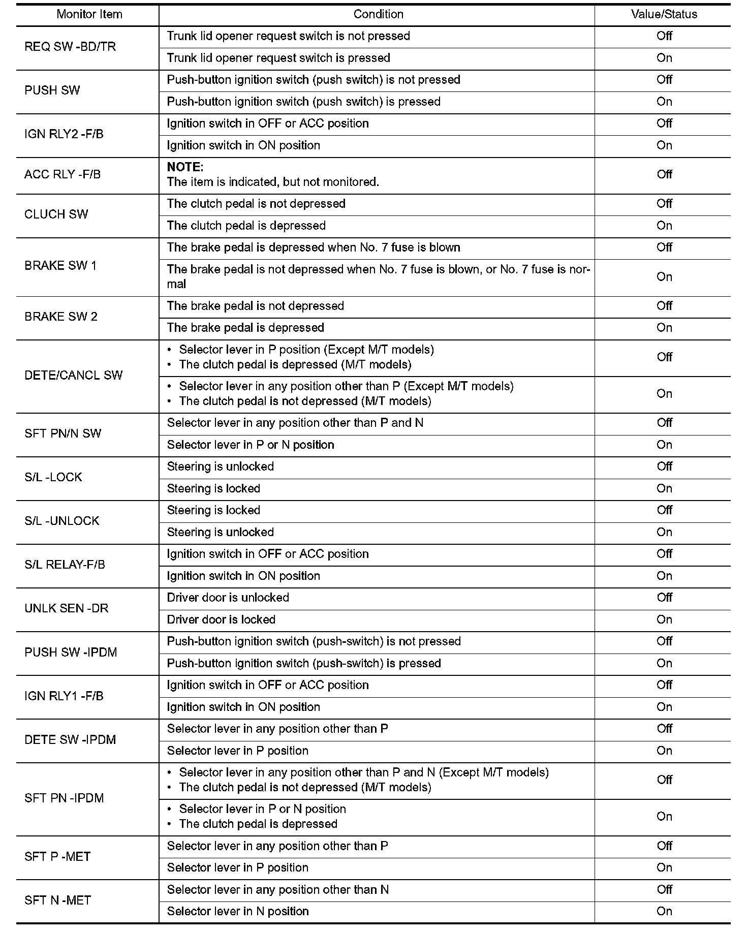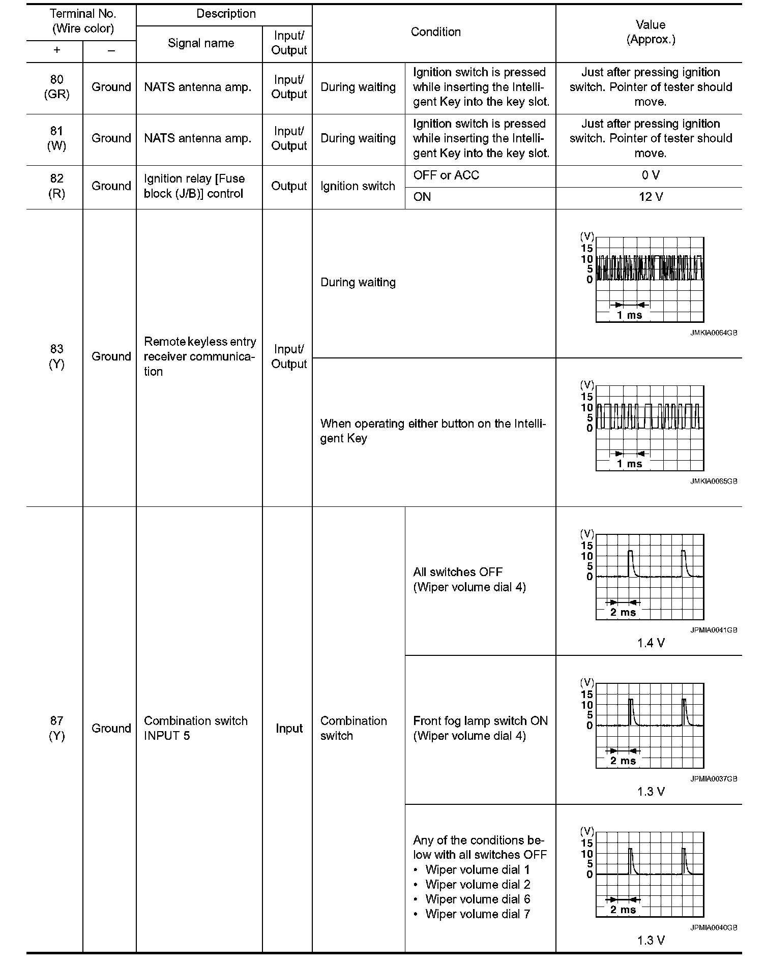 Pinout Values and Diagnostic Parameters
