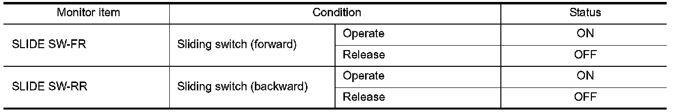 2. Select "SLIDE SW-FR", "SLIDE SW-RR" in the "Data monitor" mode using CONSULT-III.
