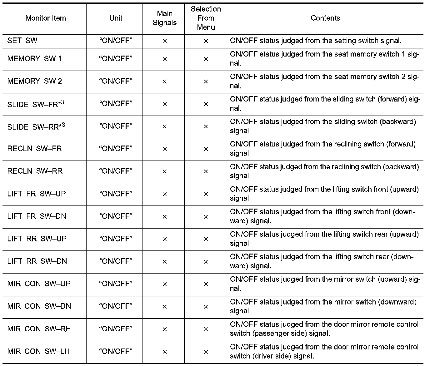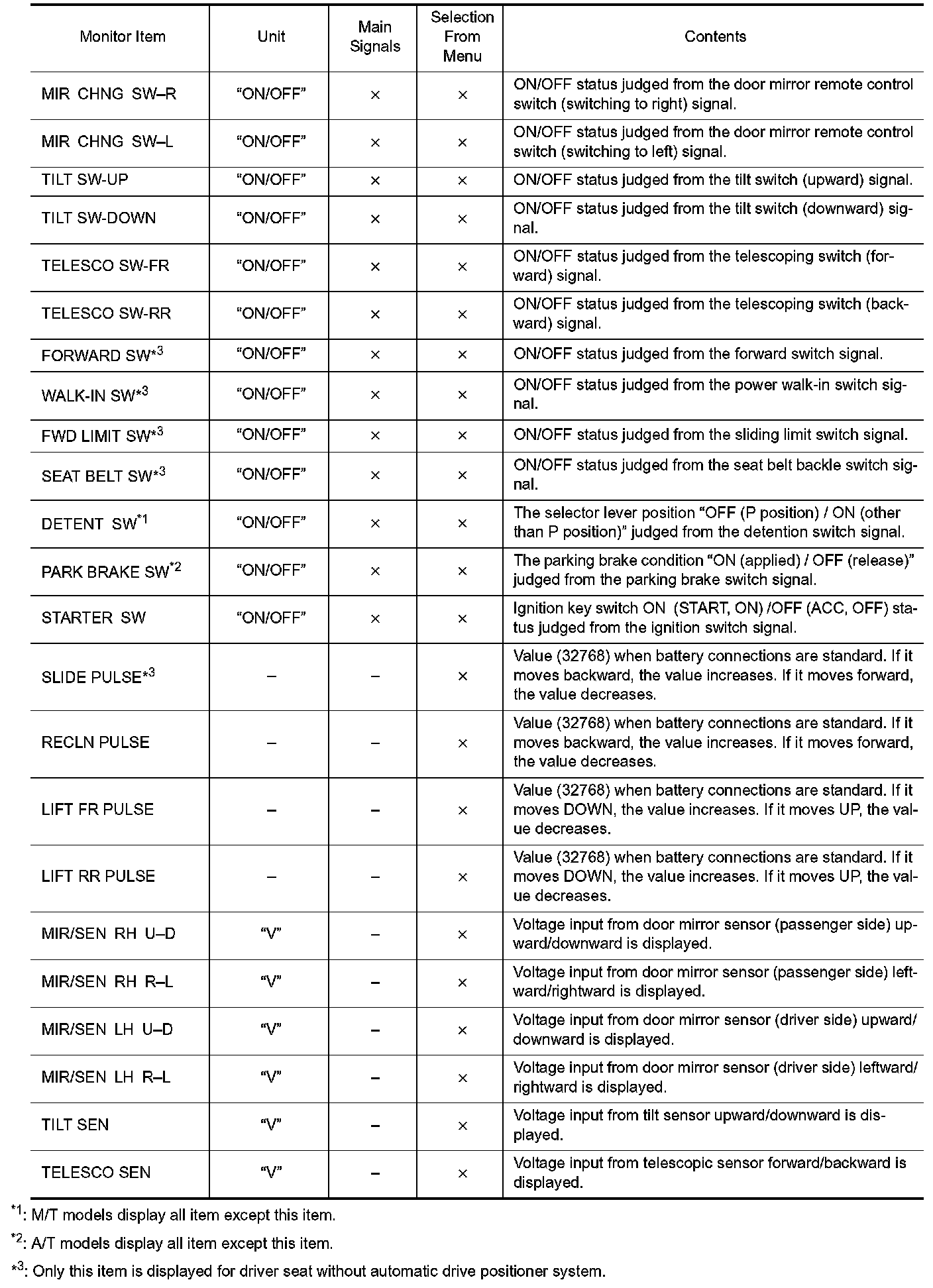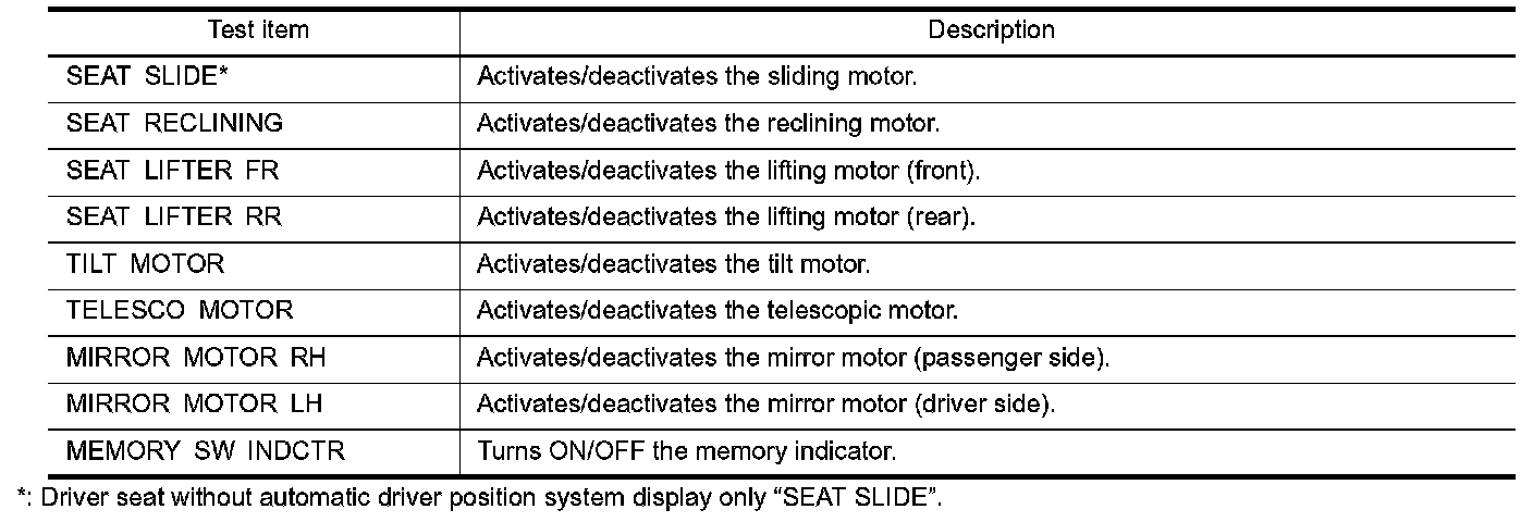 DIAGNOSIS SYSTEM (DRIVER SEAT C/U)