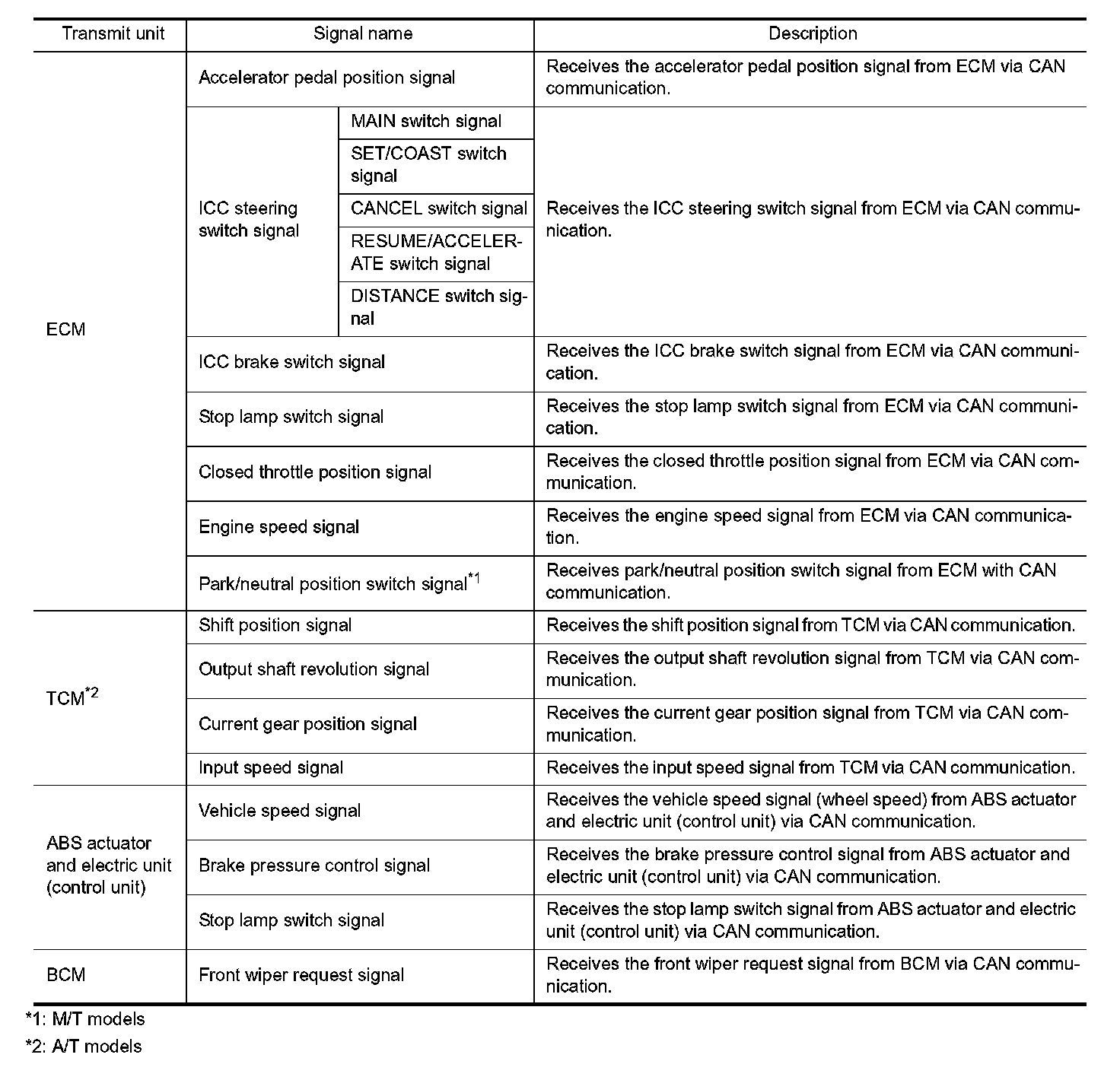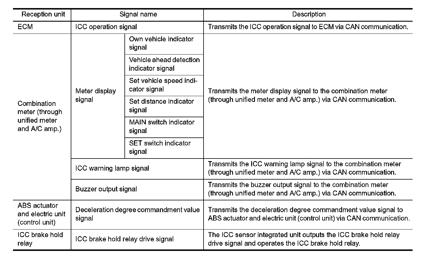 ICC SENSOR INTEGRATED UNIT INPUT/OUTPUT SIGNAL ITEM