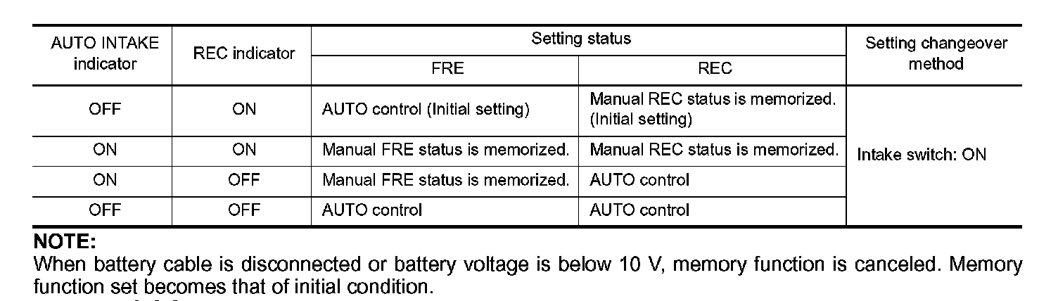 When ignition switch is turned from OFF to ON, inlet port can be set to AUTO or manual.