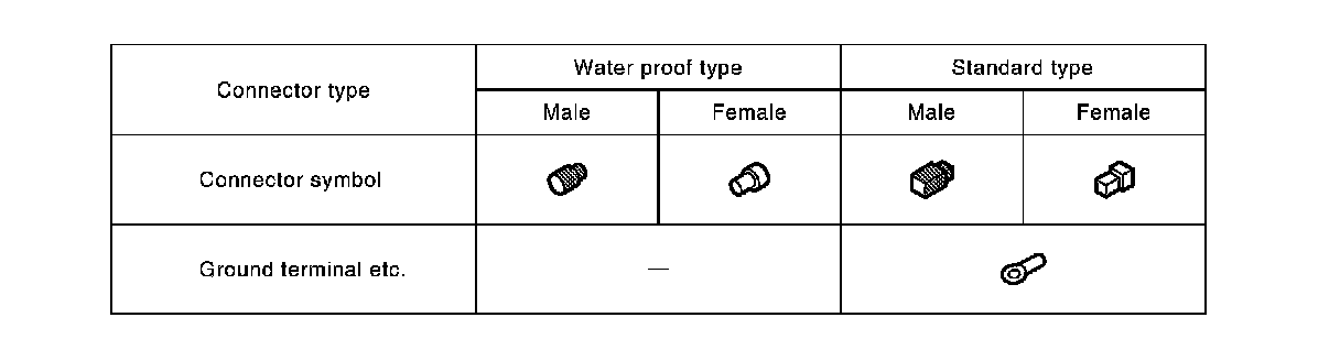 Main symbols of connector (in Harness Layout) are indicated in the below.