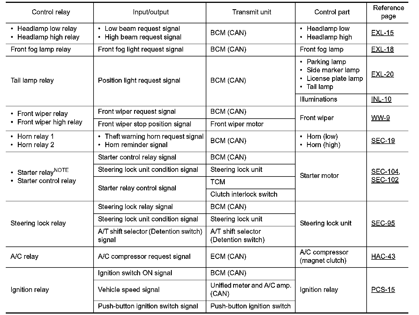 IPDM E/R activates the internal control circuit to perform the relay ON-OFF control according to the input signals from various sensors and the request signals received from control units via CAN communication.