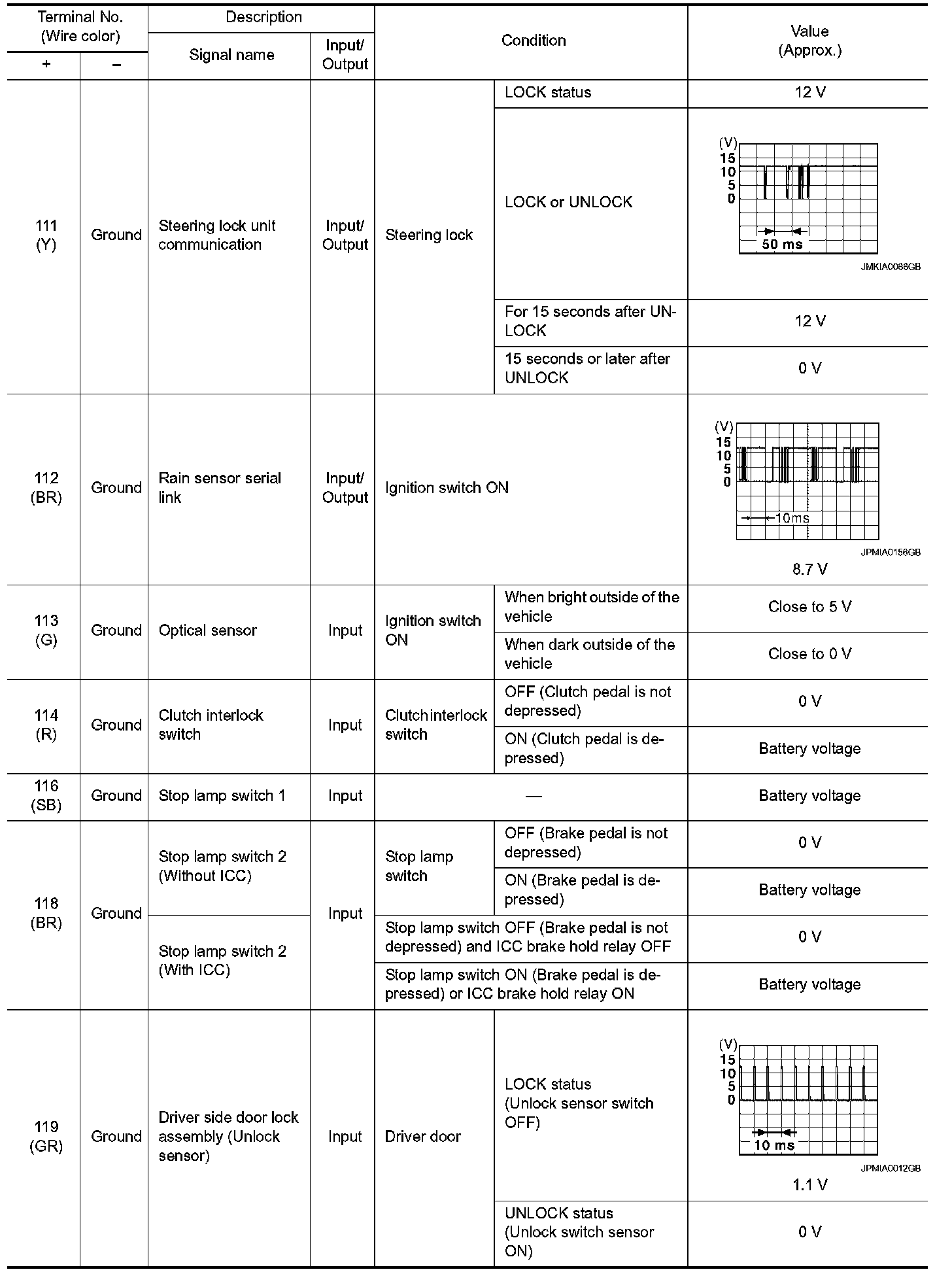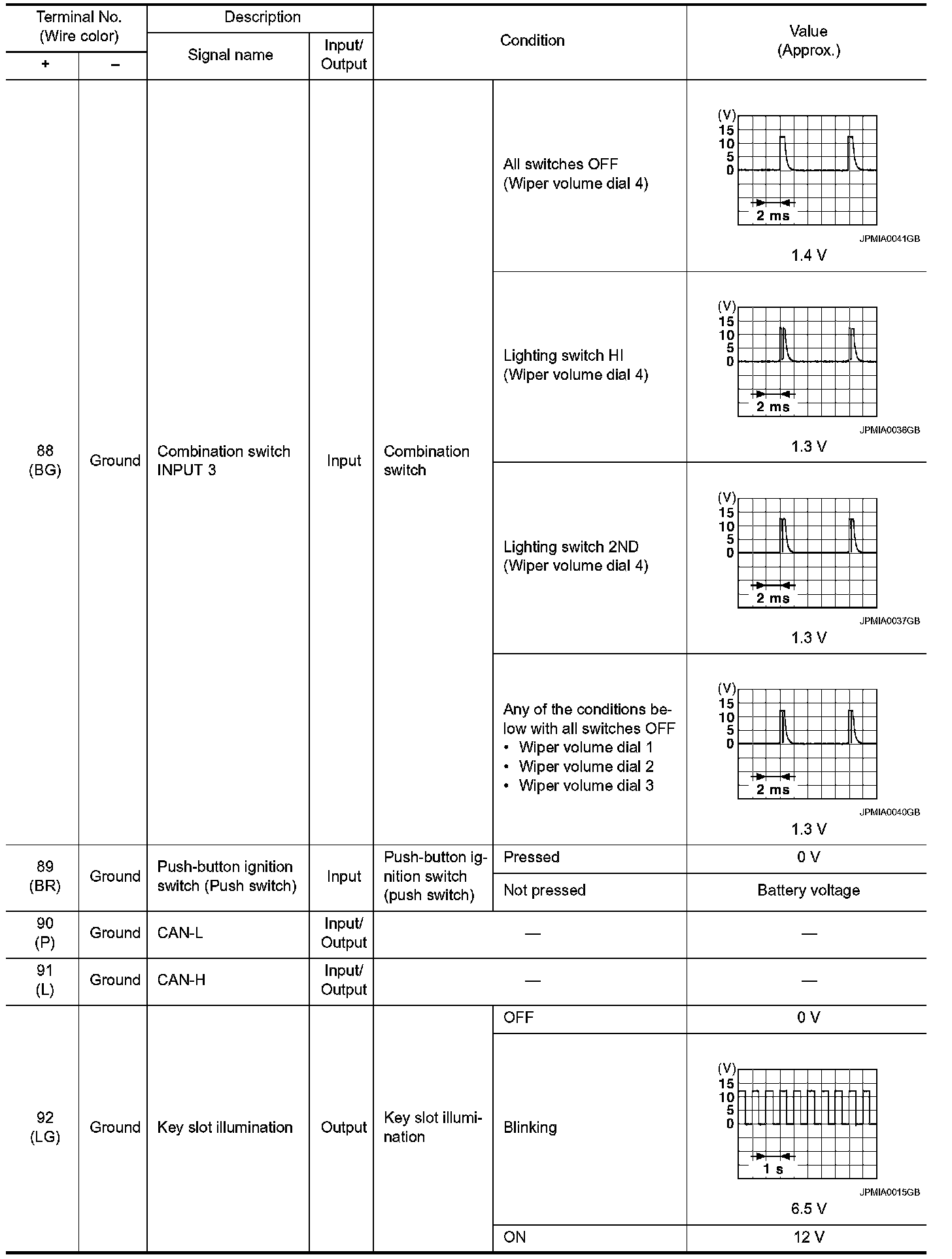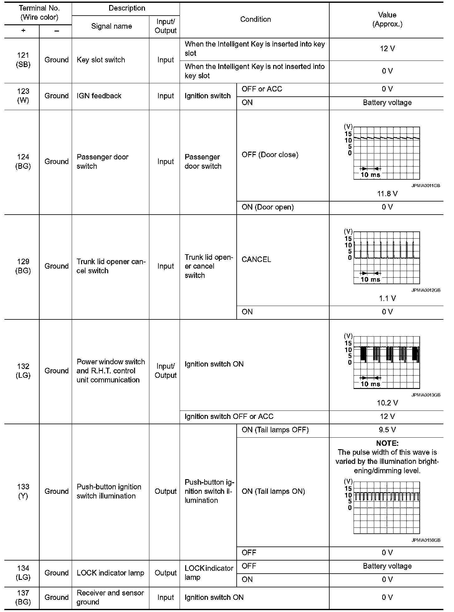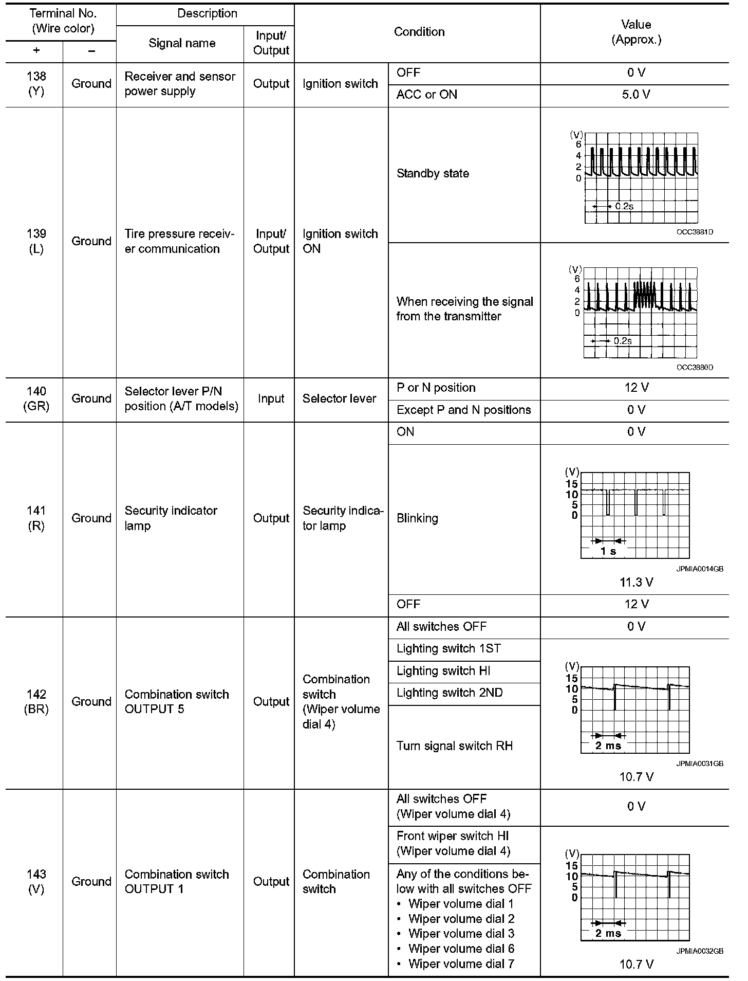 Pinout Values and Diagnostic Parameters