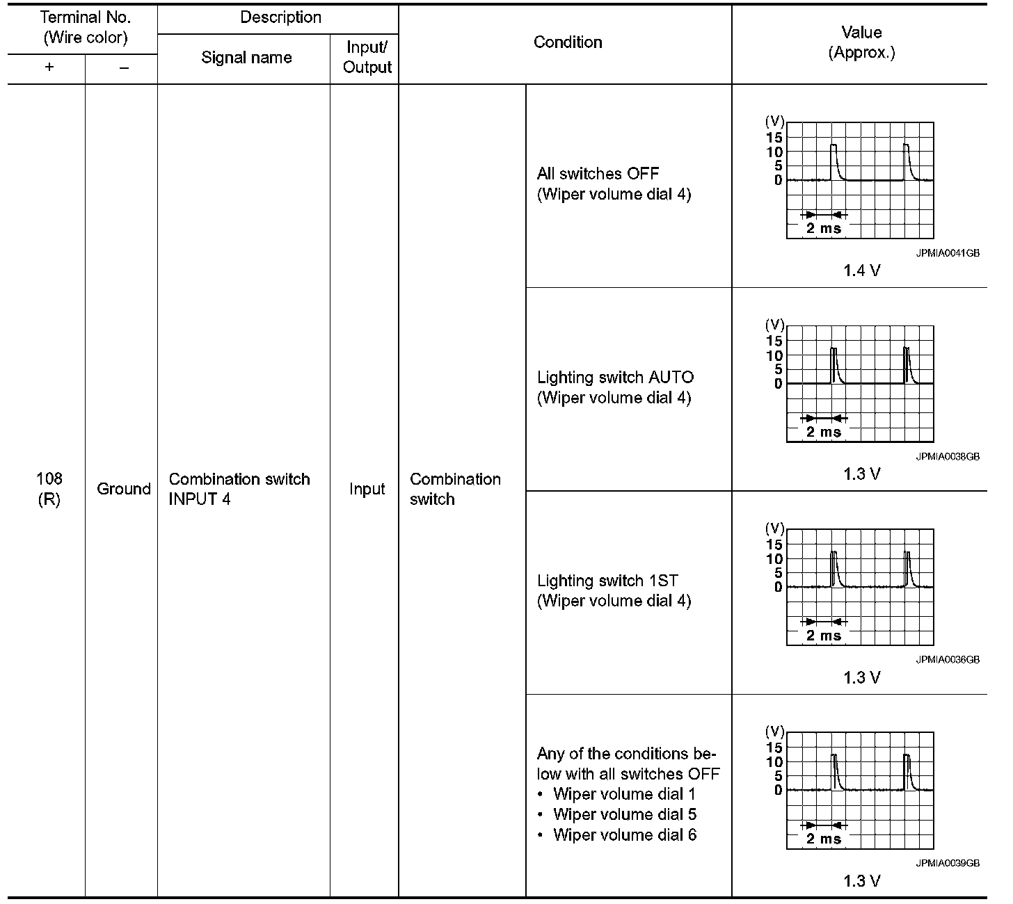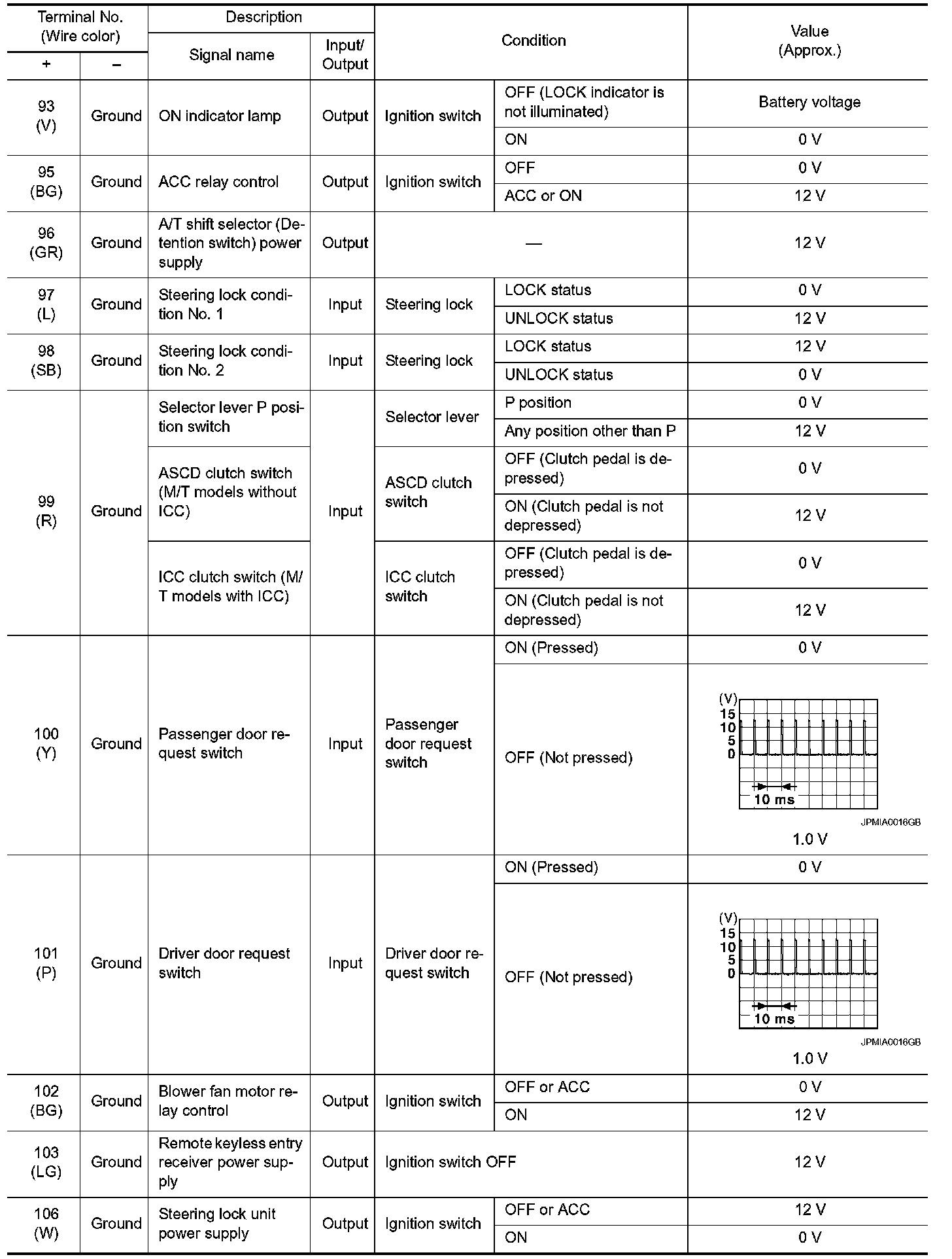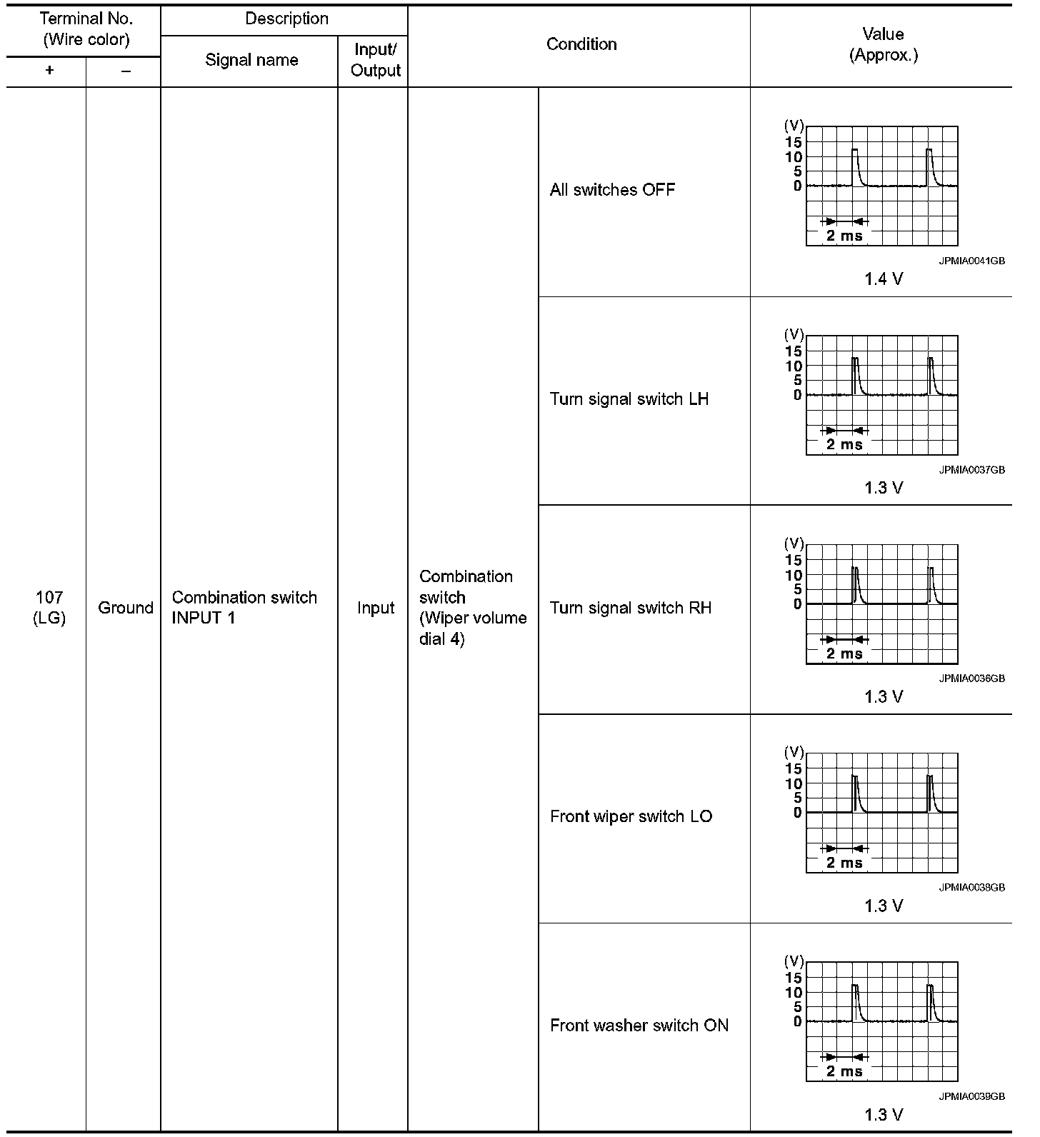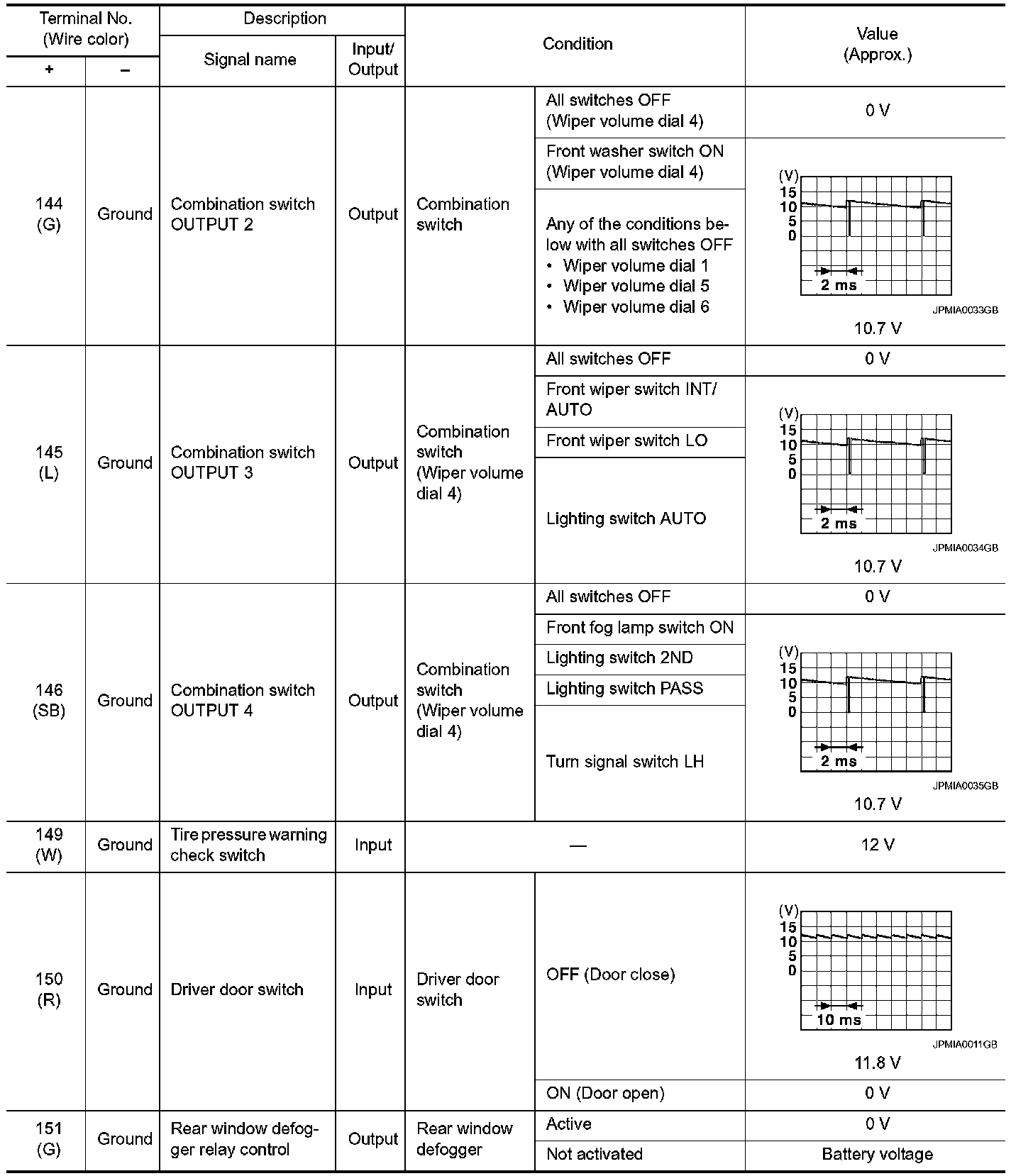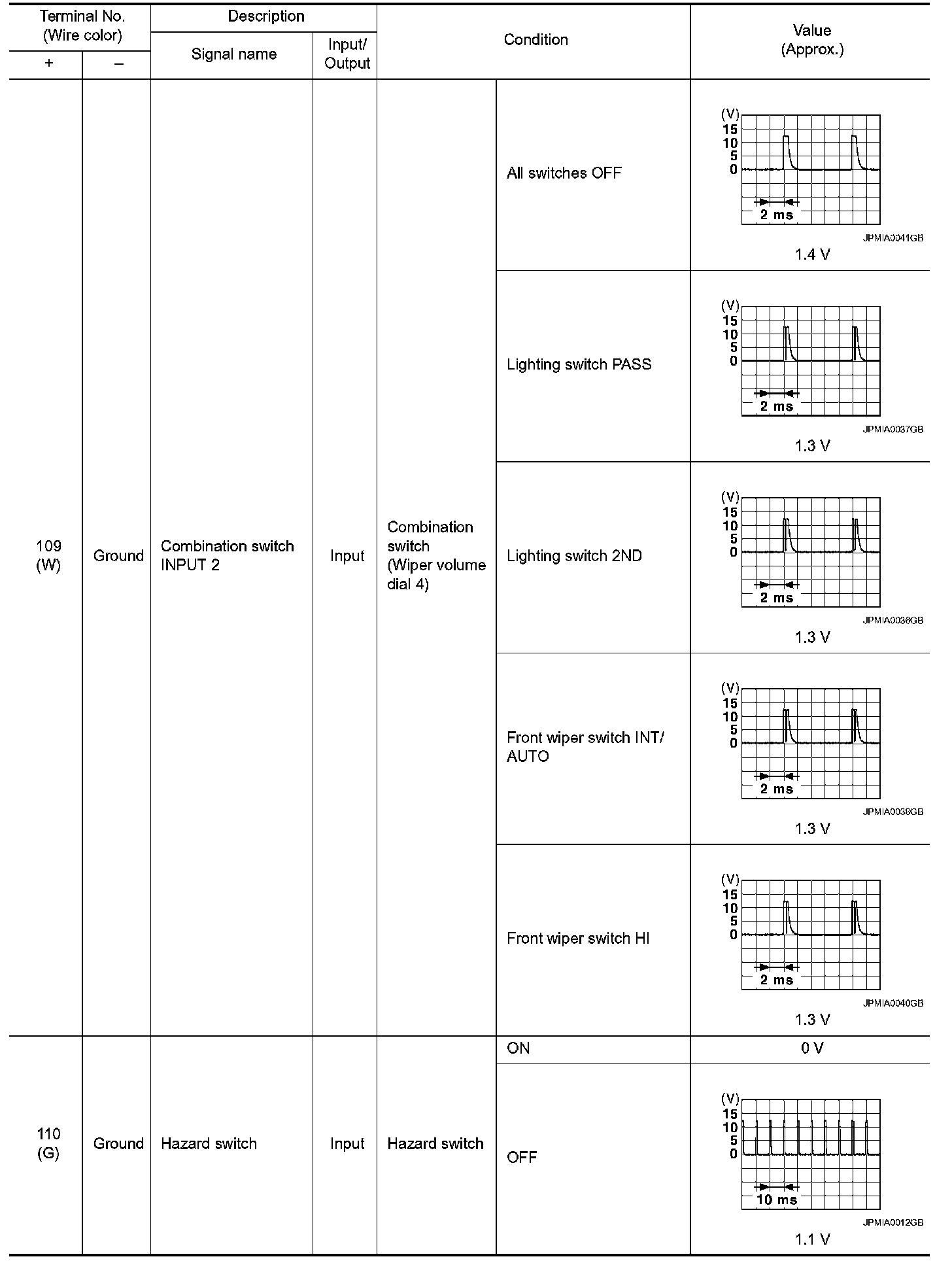 Pinout Values and Diagnostic Parameters