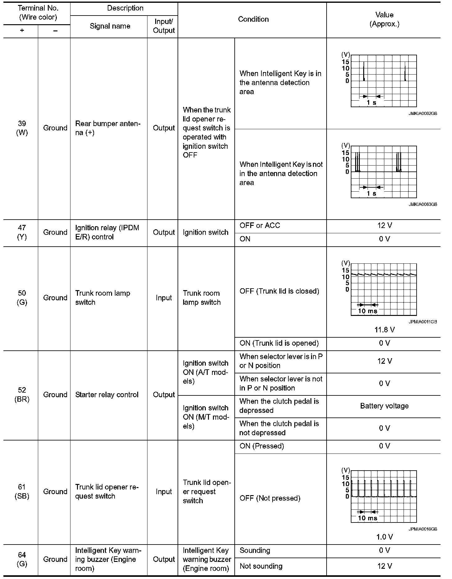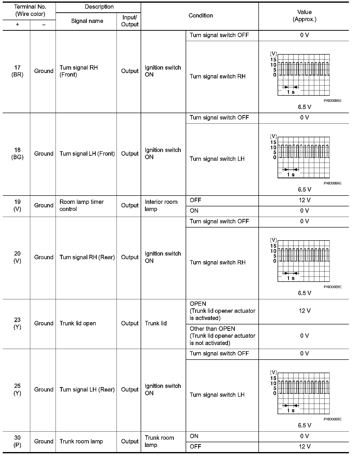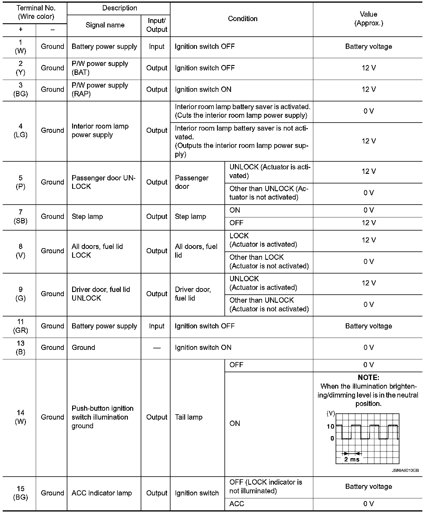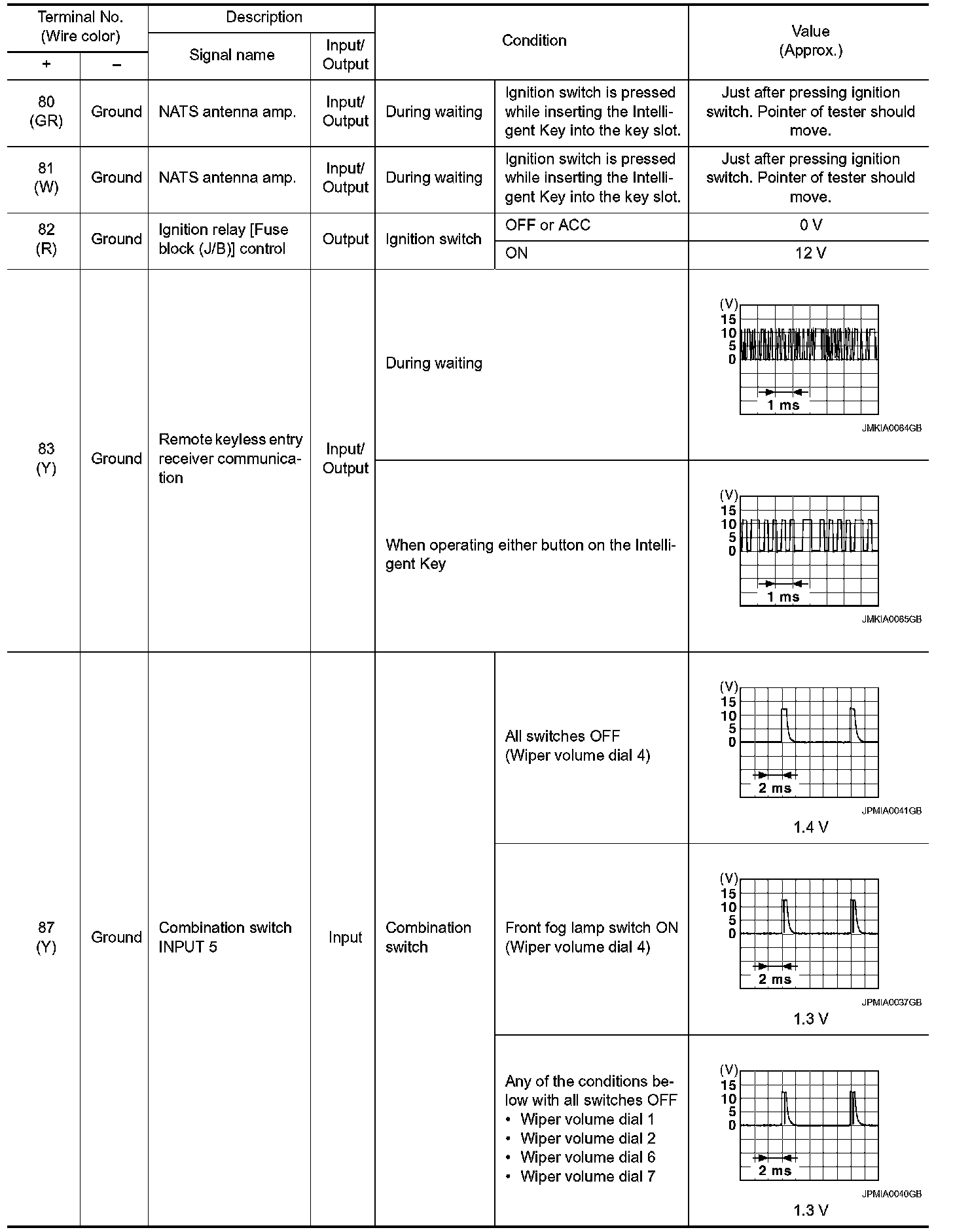 Pinout Values and Diagnostic Parameters