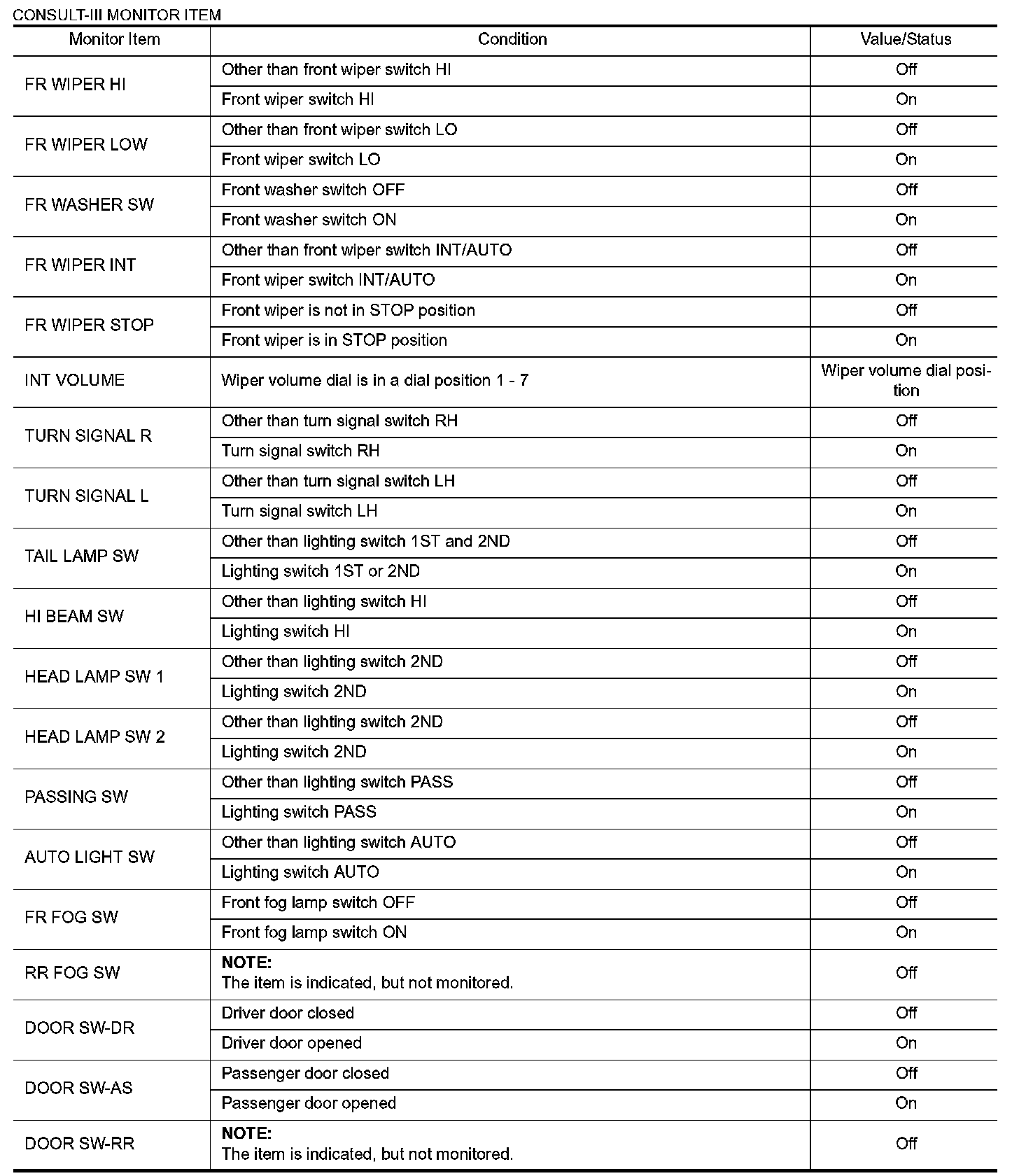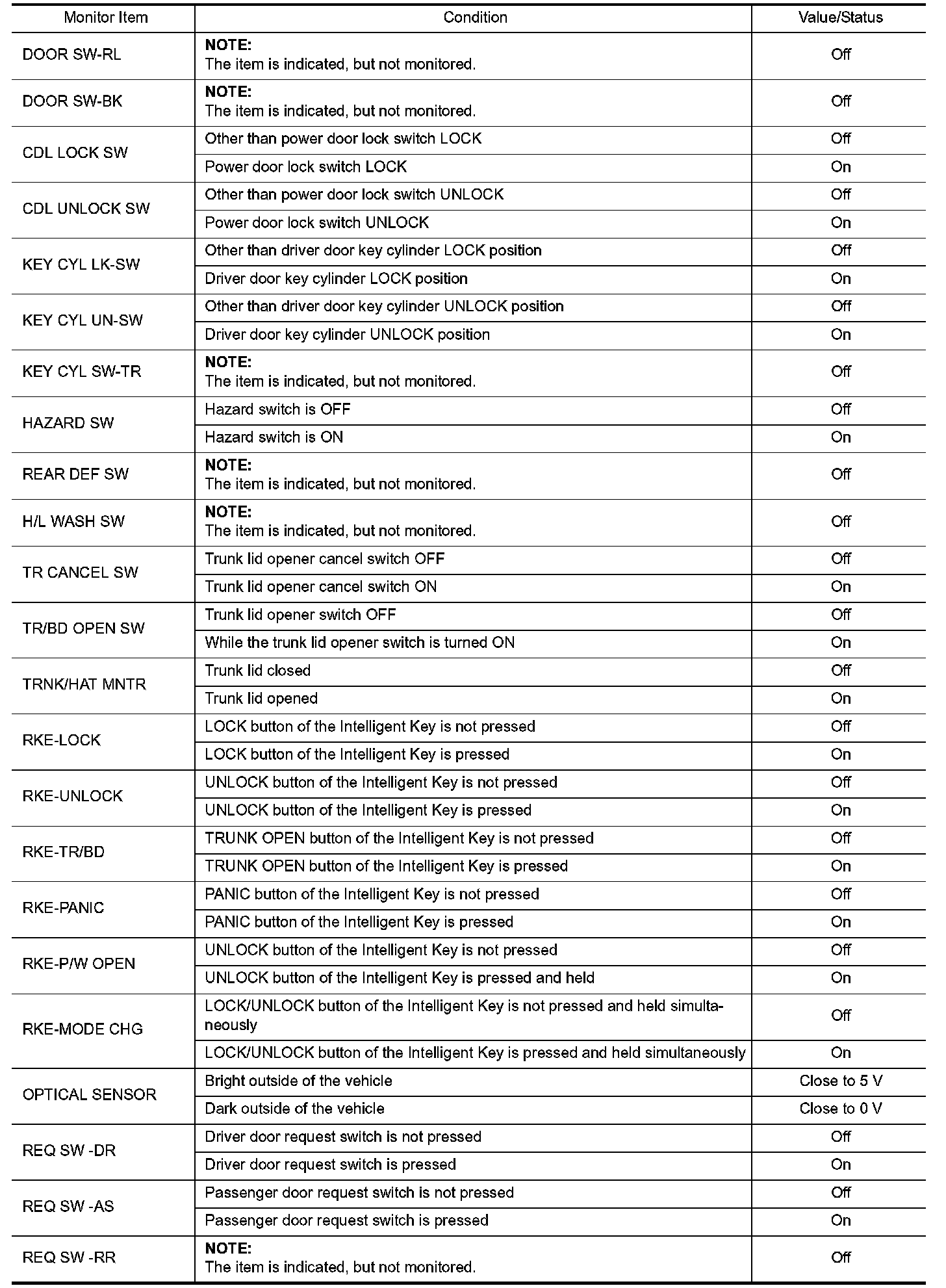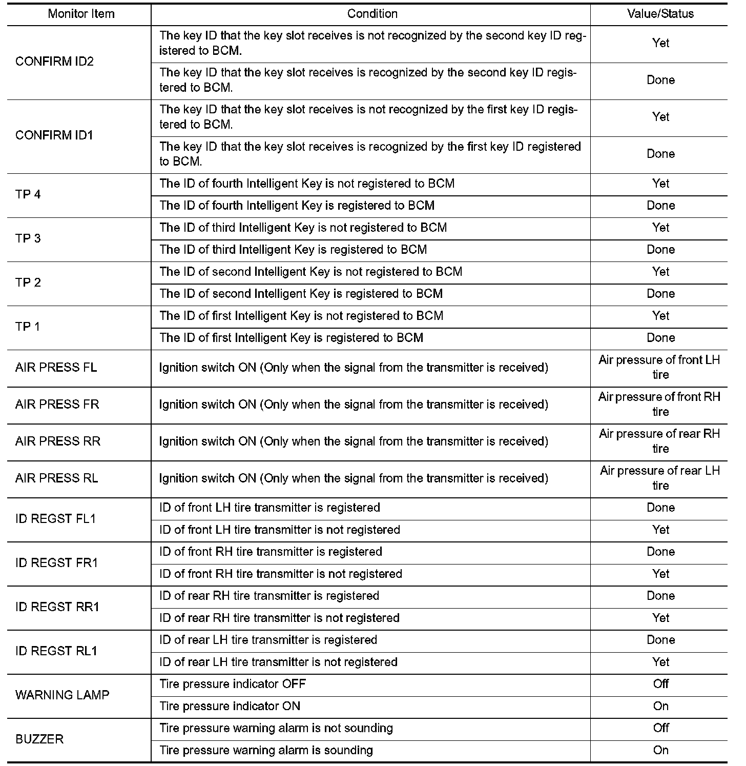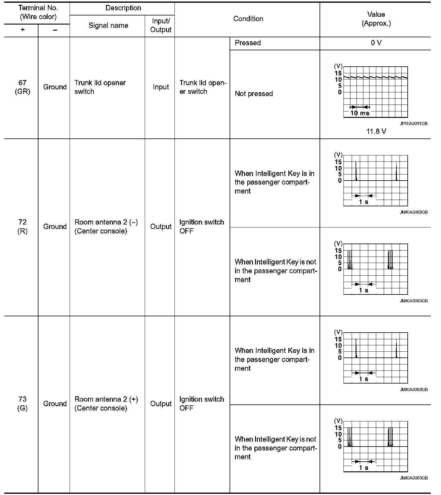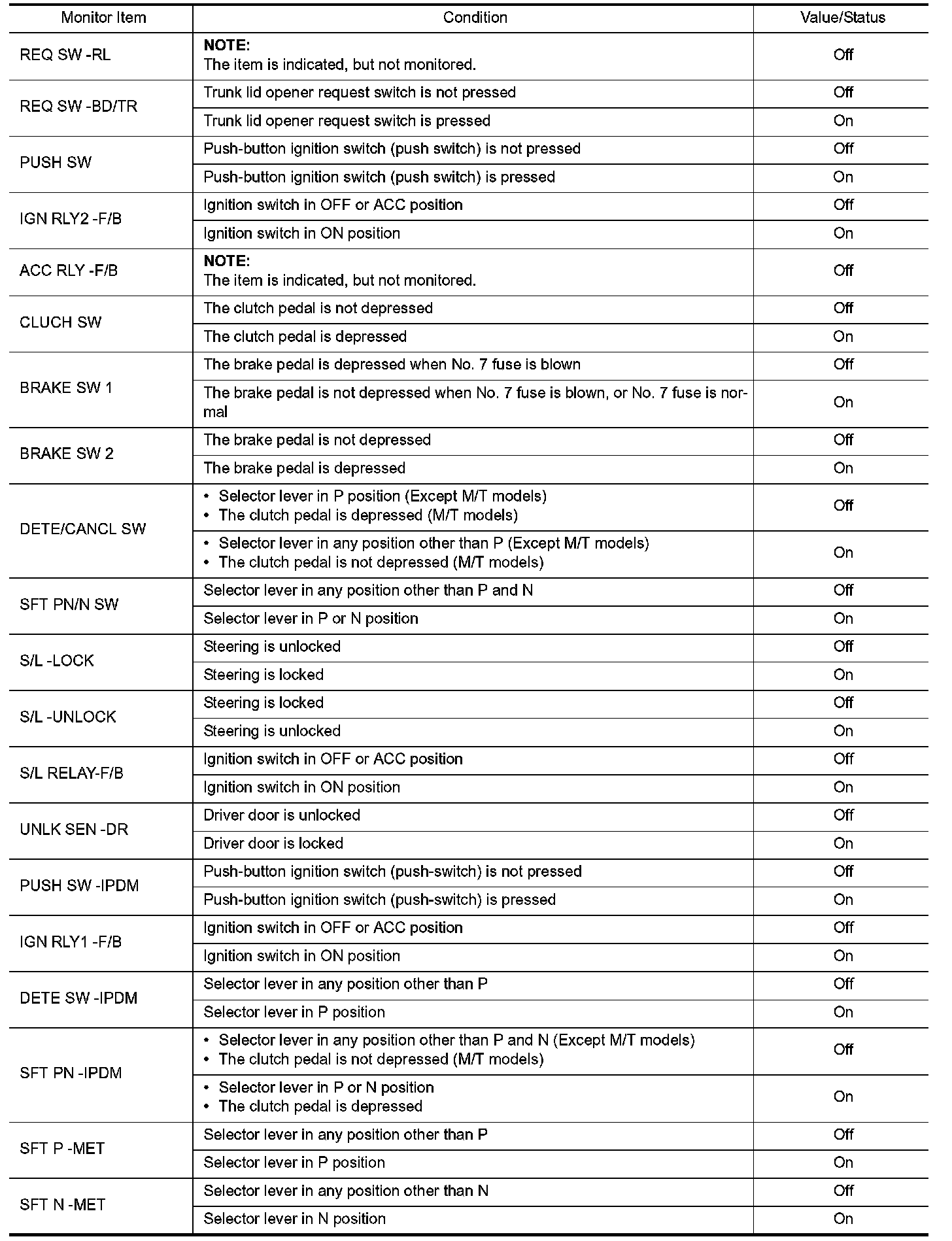 Pinout Values and Diagnostic Parameters